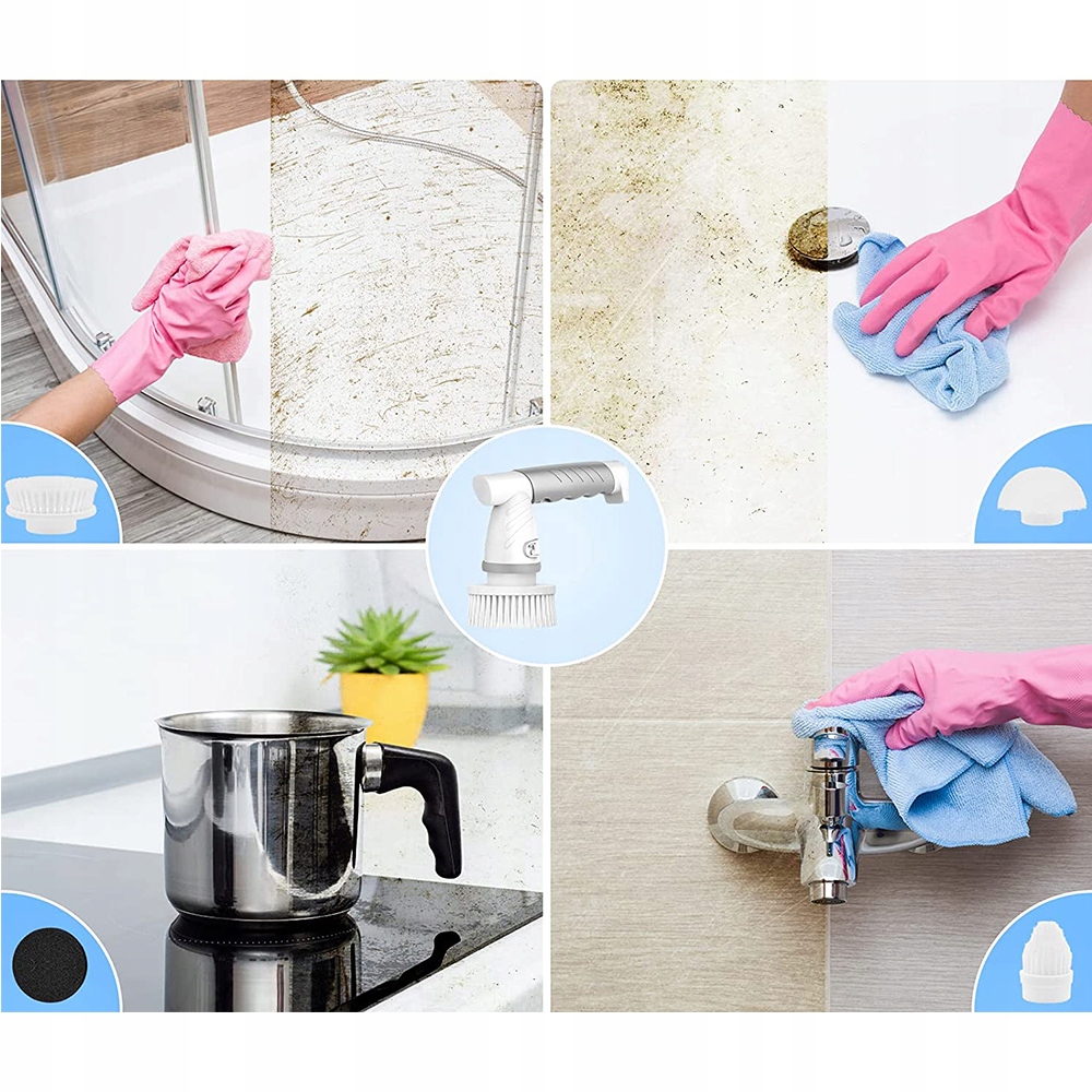- ⚡ - MВам набридло прибирати вдома? Ця акумуляторна підлогомийна машина розроблена, щоб звільнити ваші руки від прибирання. Він оснащений потужним двигуном 350 об/хв, який дозволяє ефективно видаляти складні плями. Існують багатофункціональні щітки - містять 4 відцентрові головки та 3 солом’яні щітки ertra, придатні для чищення ванних кімнат, ванн, душів, стільниць, плит, раковин, скла, варильних поверхонь, плитки, ванн тощо.