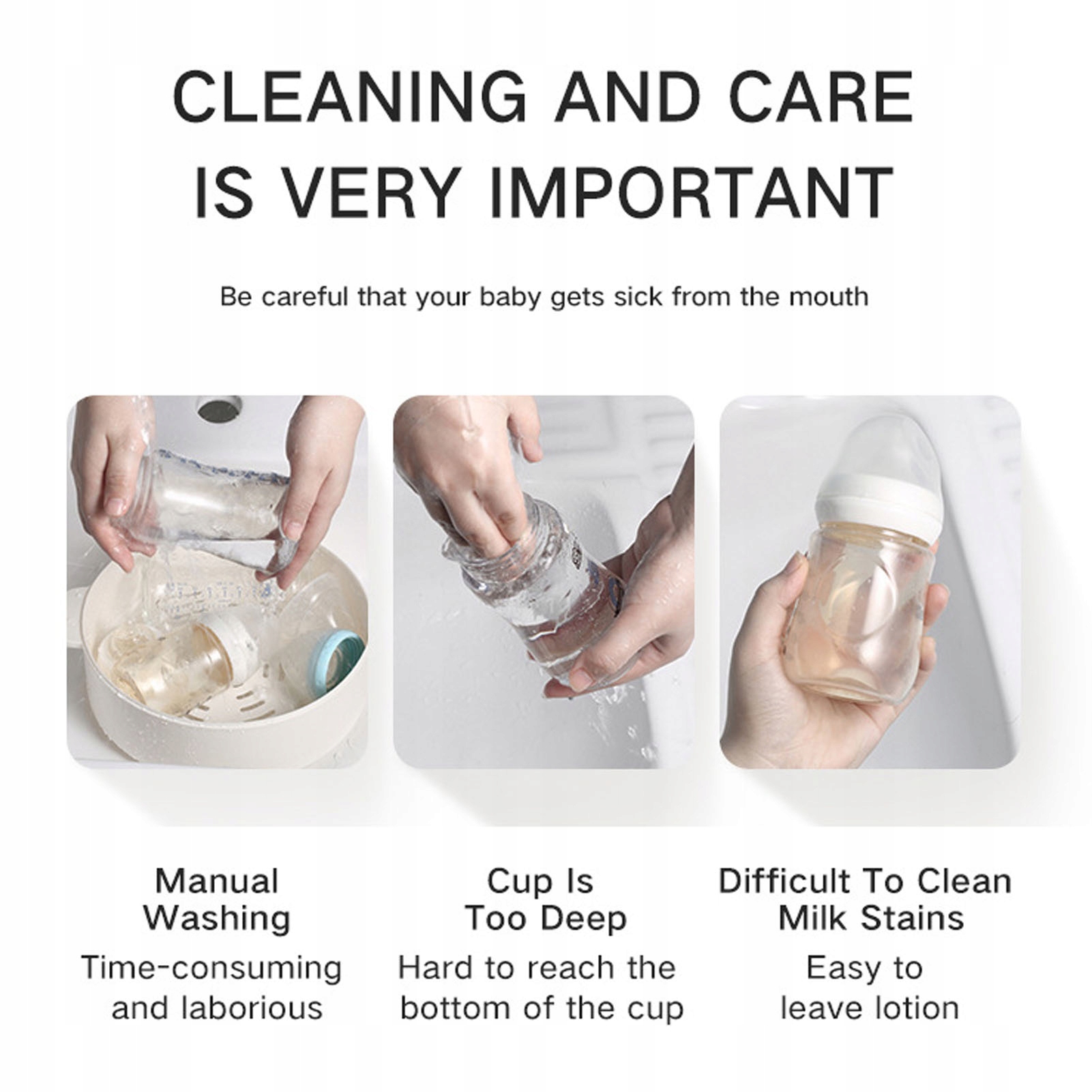 4. Безпечний матеріал: щітки для чищення пляшок виготовлені з міцного силікону без запаху та ABS-пластику, безпечні та екологічні.