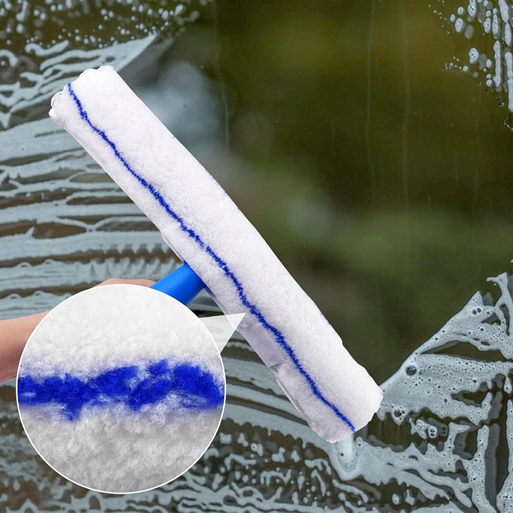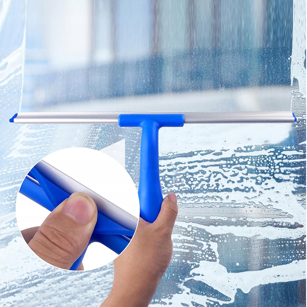 Тканина з мікрофібри довжиною 37 см добре вбирає й легко видаляє навіть найскладніші плями. У комплект входить додаткова серветка, що полегшує заміну і забезпечує тривале використання. Довге силіконове лезо довжиною 35 см підходить для будь-якої гладкої поверхні та легко видаляє сліди води та мила, не залишаючи слідів.