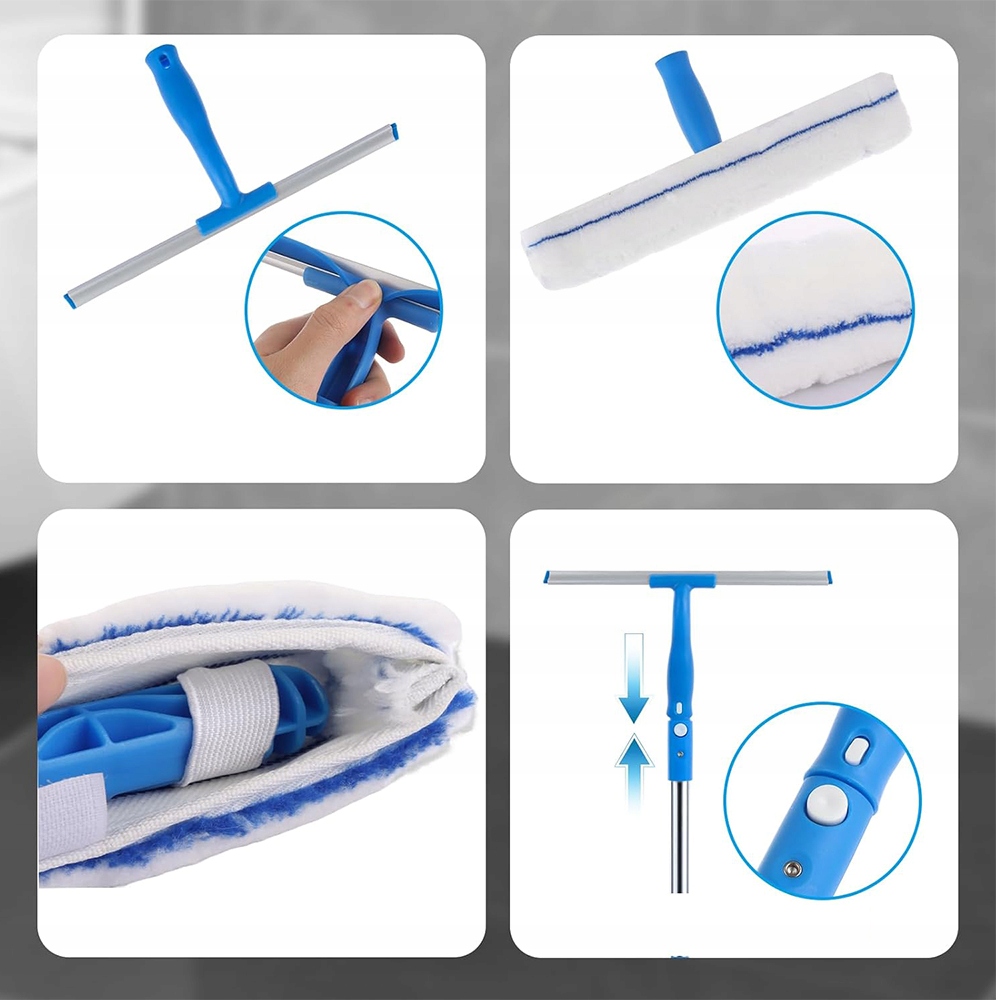 Набір для чищення є ідеальним рішенням для чищення вікон, дверей, дзеркал, підлоги, лобового скла автомобіля та багатьох інших поверхонь. Його універсальність робить його незамінним інструментом як вдома, так і в офісі.