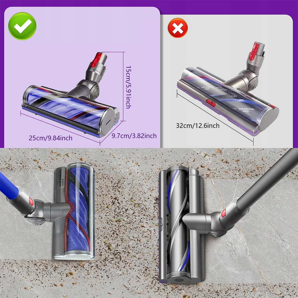 🔌【ДЕТАЛЬНА СУМІСНІСТЬ】Змінна вакуумна головка для бездротових моделей Dyson V7, V8, V10, V11, V15 (включаючи V15 Animal), SV10, SV11, SV12, SV14, SV15, SV17, SV22, SV25, SV27, SV28, SV47. ВАЖЛИВО: Несумісний із моделями серії Outsize, V6, V12 і DC‼️ Порівняйте з оригінальними номерами деталей: 968266-02, 968266-04, 967483-01, 967483-03, 967483-04.