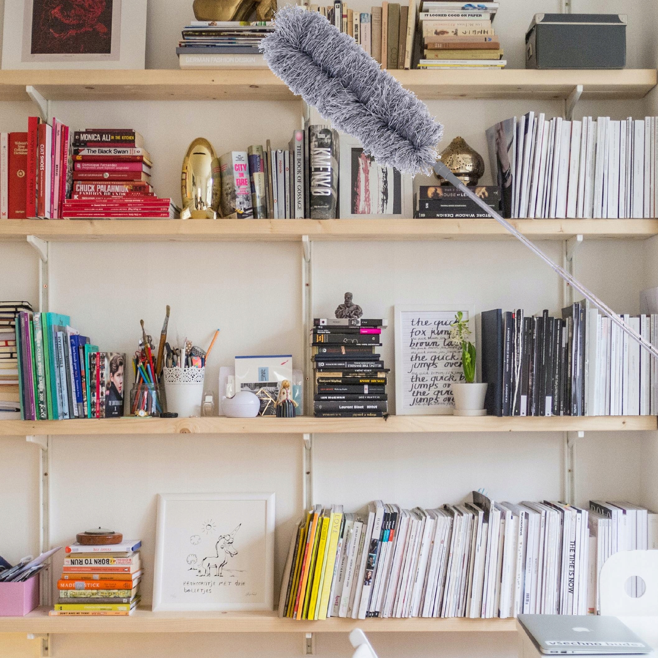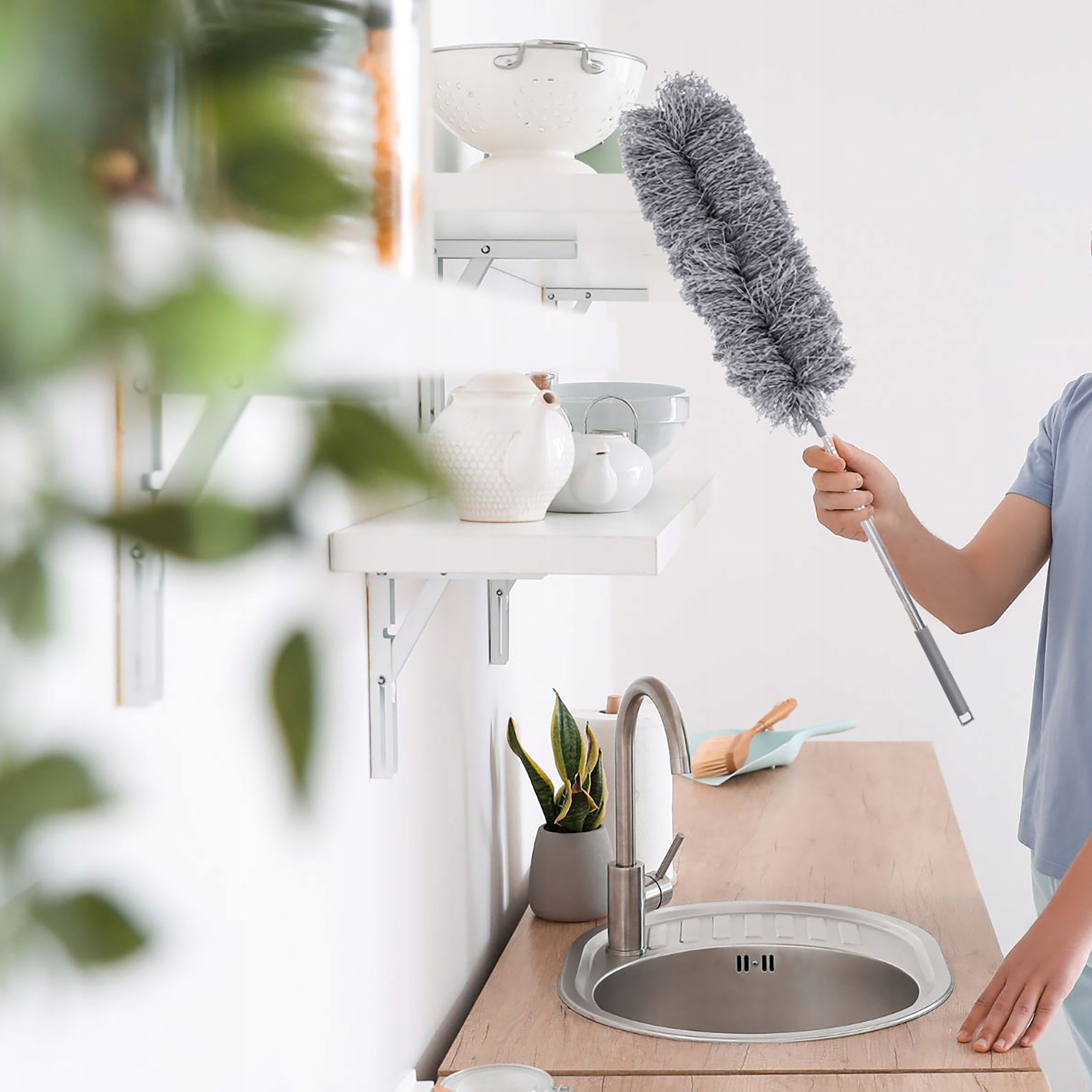 Завдяки телескопічній ручці, яка висувається від 77 до 280 см, ця мітла дозволяє прибирати навіть у найвищих місцях. Незалежно від того, чи потрібно вам дістатися до стелі чи за меблями, ця ганчірка для пилу — інструмент, який працюватиме скрізь.