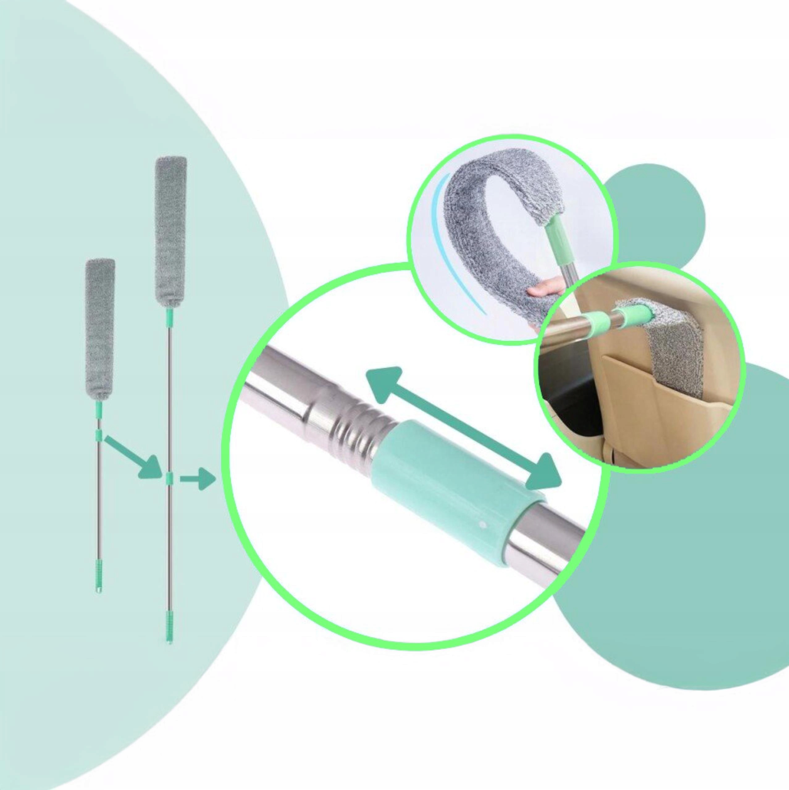 - Легке утримання в чистоті: Завдяки електростатичному мікроволокну наша мітла ефективно збирає пил і павутину, а гнучкий наконечник дозволяє дістатися до найбільш важкодоступних куточків.