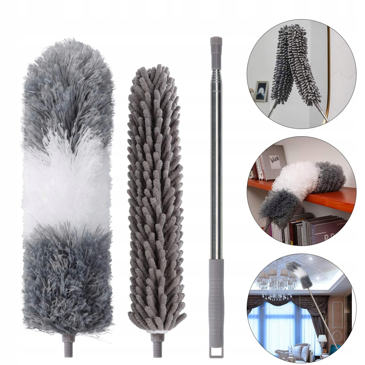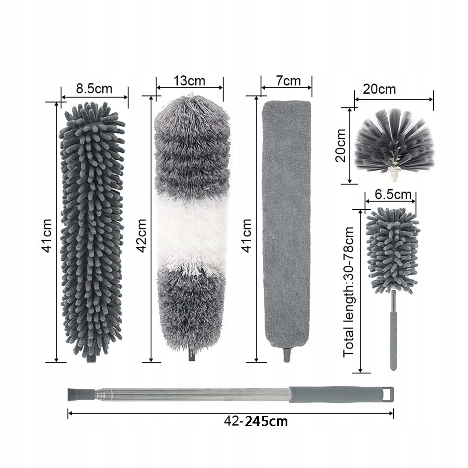 Висувна щітка для пилу, довжину можна збільшити до 245 см b> , ідеально підходить для очищення стін, труб, високих стель, павутини або тріщин, основи побутової техніки, меблів і побутової техніки, а також може легко видалити пил з кутів стелі.