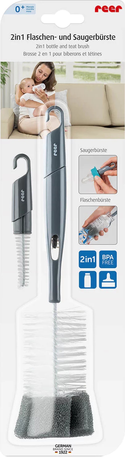 Щітка для пляшечок і сосок 2 в 1 від Reerдопоможе вам забезпечити належну гігієну аксесуарів для годування вашої дитини.