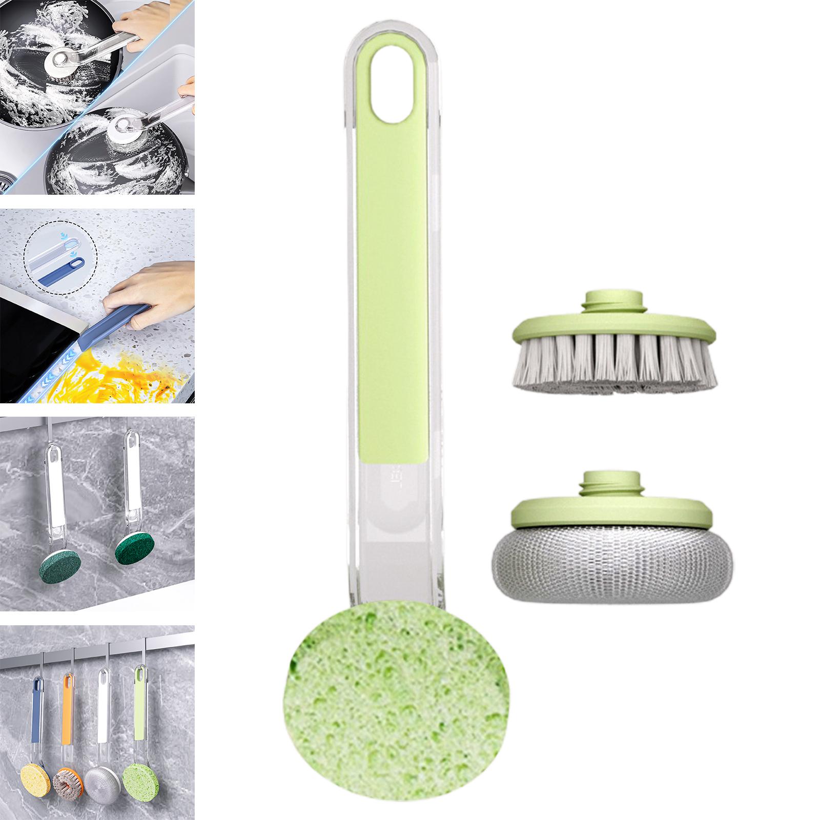 [3 насадки для щітки]: цей набір щіток для миття посуду з різними насадками для щітки: 1 жорстка насадка для щітки, 1 насадка зі сталевим дротом і 1 насадка для губки.