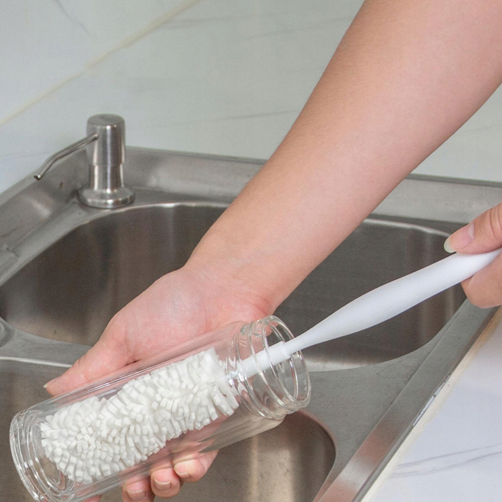 4 Головка пензля швидко створює багату піну, що дозволяє зменшити кількість відходів. Є хорошим помічником у прибиранні будинку. 4 Очищення просте, тому що все ковзає в мить ока.[Застосування] очисного агента для пляшок підходить для пляшок, пляшок з водою, спіральною склянкою та кави та іншими спортивними пляшками.