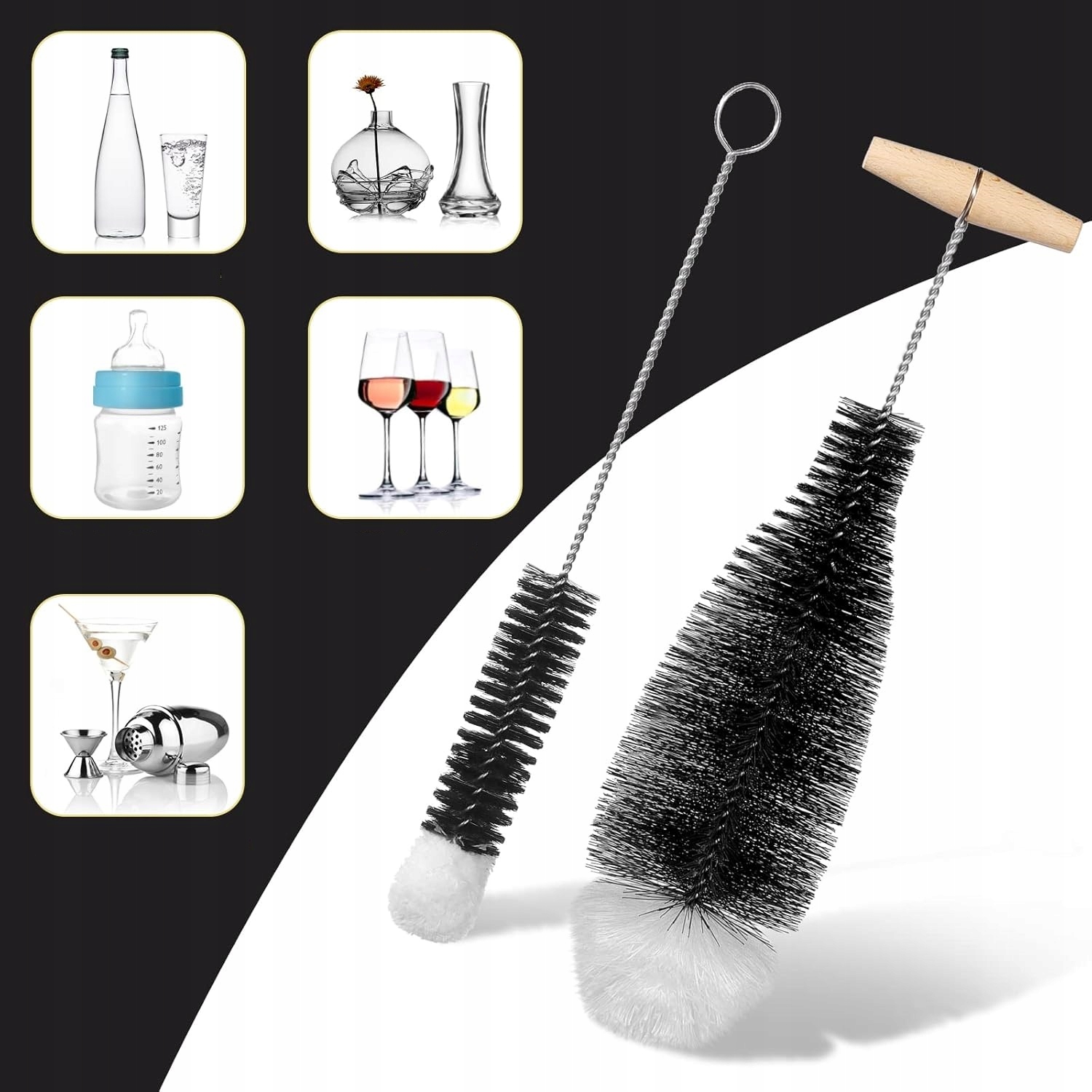 Широке застосування: в набір входить 2 пензлика різного розміру (1 шт. 35 х 9 см, 1 шт. 34 х 3,5 см). Завдяки своїй гнучкій формі пензлик підходить не лише для всіх стандартних графинів SodaStream, а й для пляшок для напоїв, дитячих пляшок, спортивних пляшок, склянок, коктейльних графинів тощо.