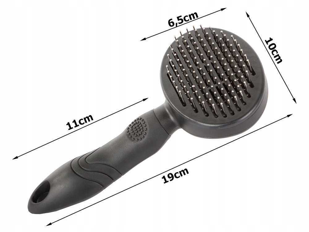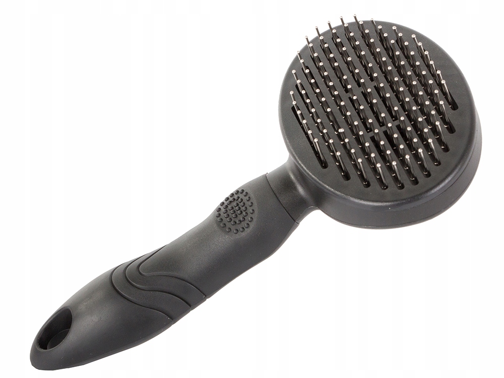 Щітка має голки з кулькою на кінціщоб не поранити вашого улюбленця під час вичісування і зробити розчісування для нього задоволенням.Ручка виготовлена з гуми і не вислизне з вашої руки.