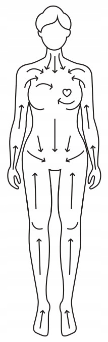 - ✅ Масажуючи груди, використовуйте короткі рухи, починаючи від сосків, а потім довгі погладжування від місця між грудьми, під грудьми, до пахви.