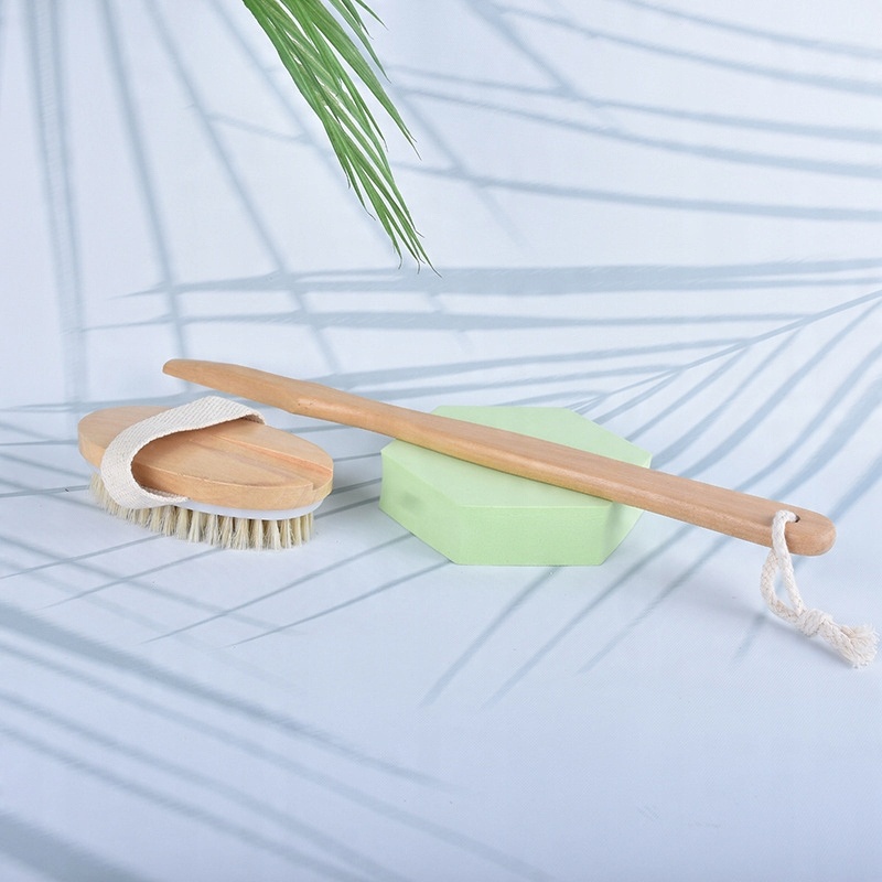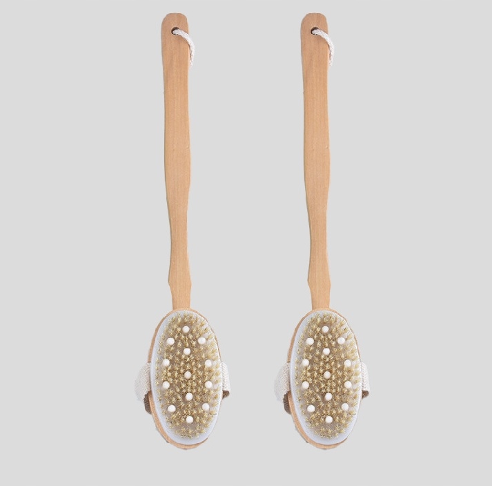 Щетинка щітки виготовлена з високоякісного натурального матеріалу, який ніжно масажує шкіру, стимулює кровообіг і стимулює лімфатичну систему для виведення токсинів.