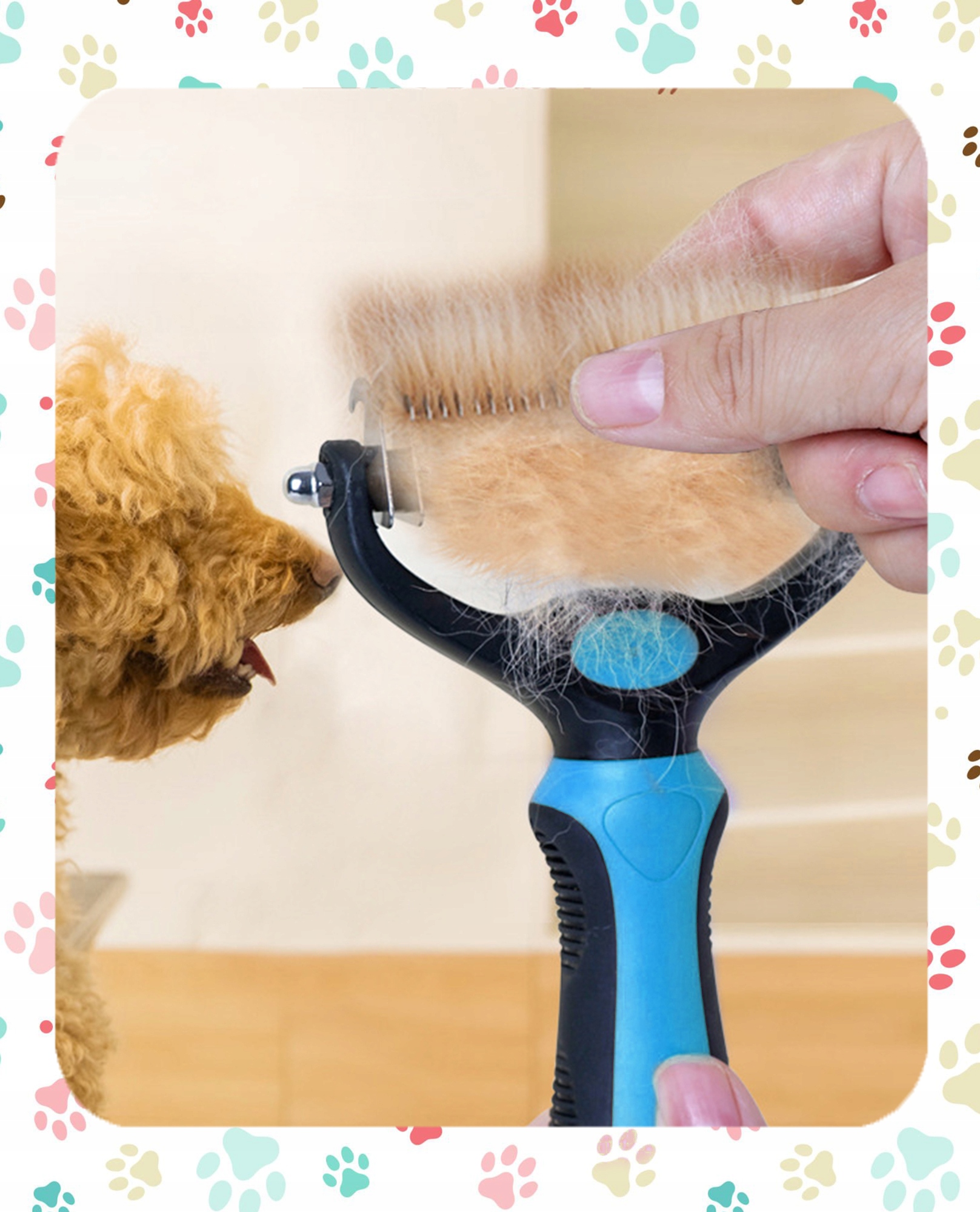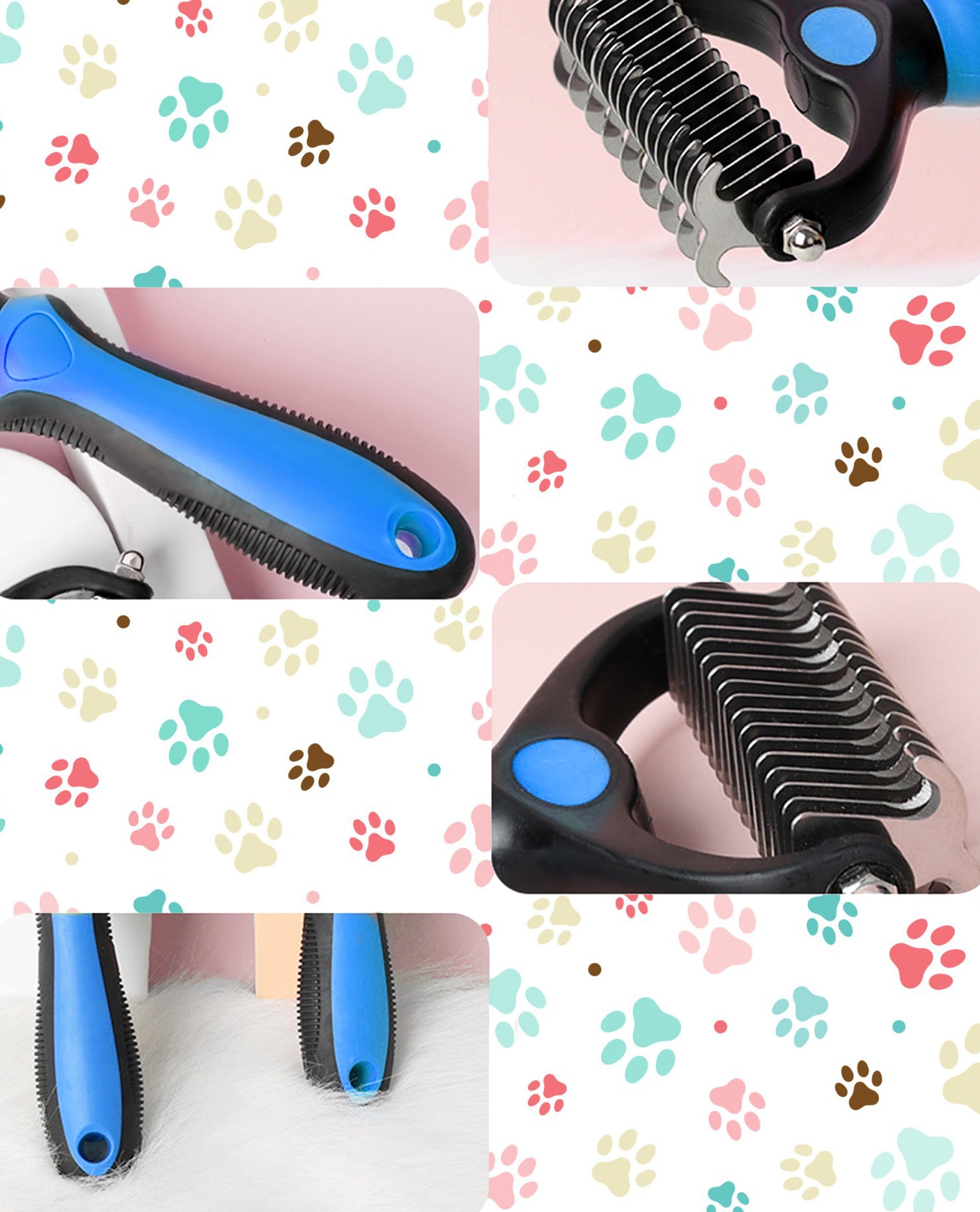 - Високоякісні леза: тример оснащений 17 заокругленими зубами, які м’яко ковзають по шерсті, ефективно видаляючи мертве волосся без ризику пошкодження шкіри. Крім того, закруглені наконечники зубів забезпечують комфортне використання, мінімізуючи ризик подразнення.