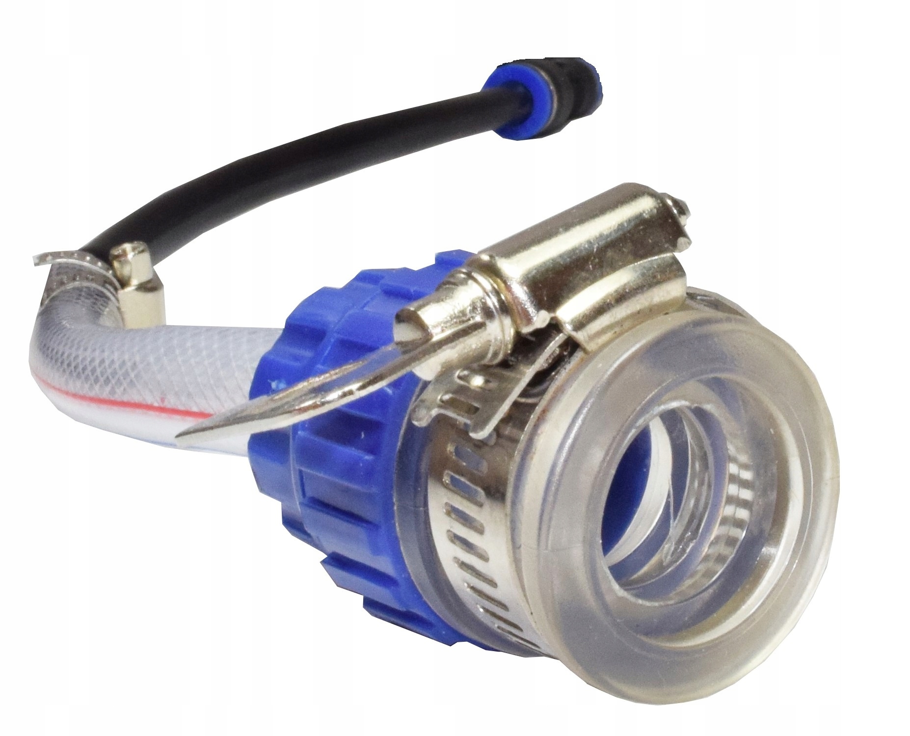 Щітка для текучої води виготовлена з двох типів потертих поліпропіленових волокон. Внутрішні чорні волокна товщі для видалення більших забруднень. Зовнішні тонкі помаранчеві волокна потерті, щоб ретельно очистити поверхню. У корпусі щітки є два отвори, через які вода надходить у волокна щітки. У комплект входить шланг довжиною 24 метри із зовнішнім діаметром 8 мм. Шланг із комплекту має універсальне з’єднання для садового шланга.