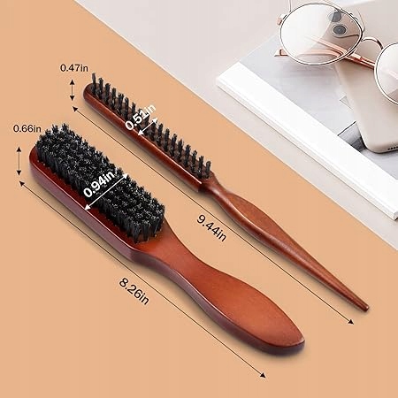 Щітка для волосся та бороди з натуральної щетини кабана, набір 2 шт., дерево