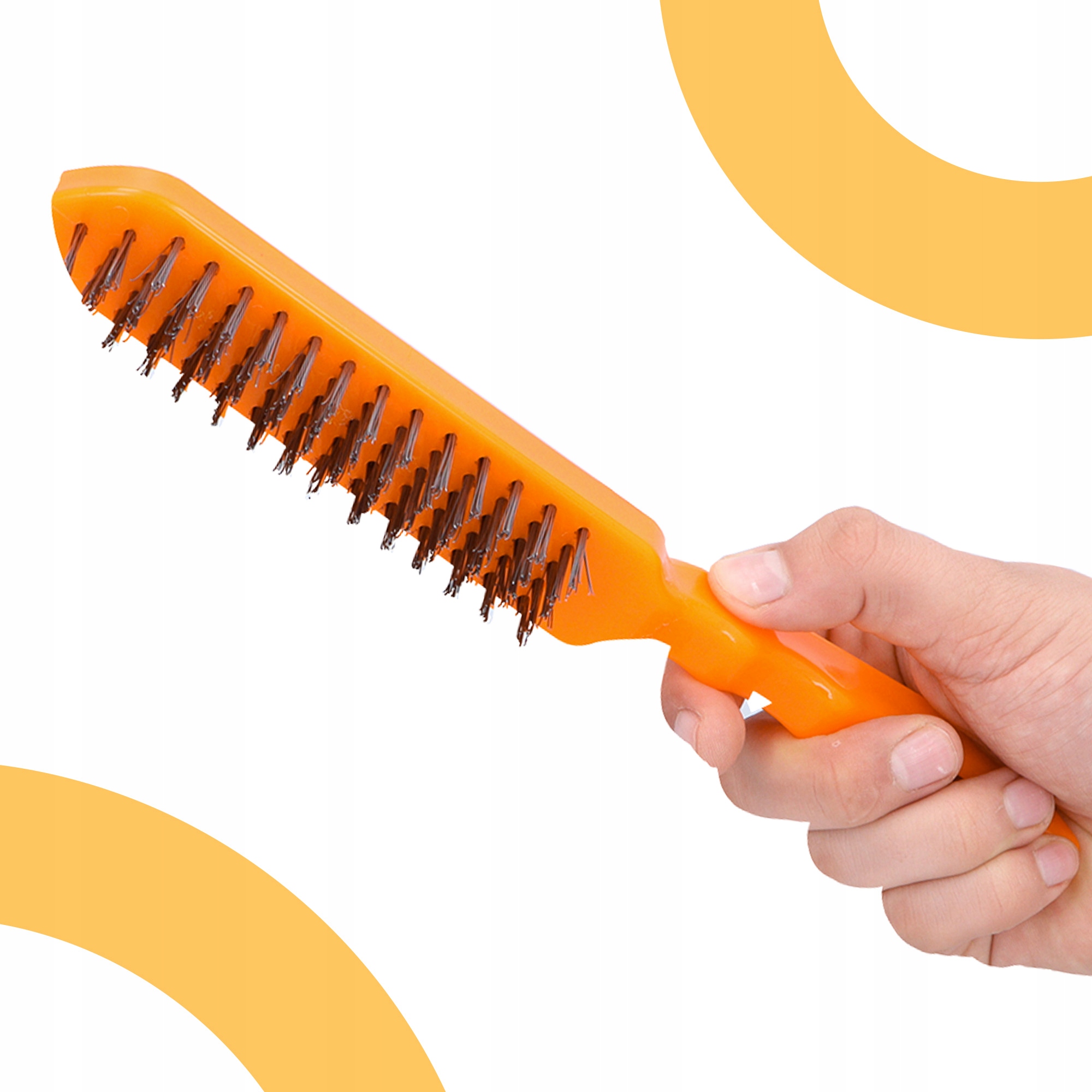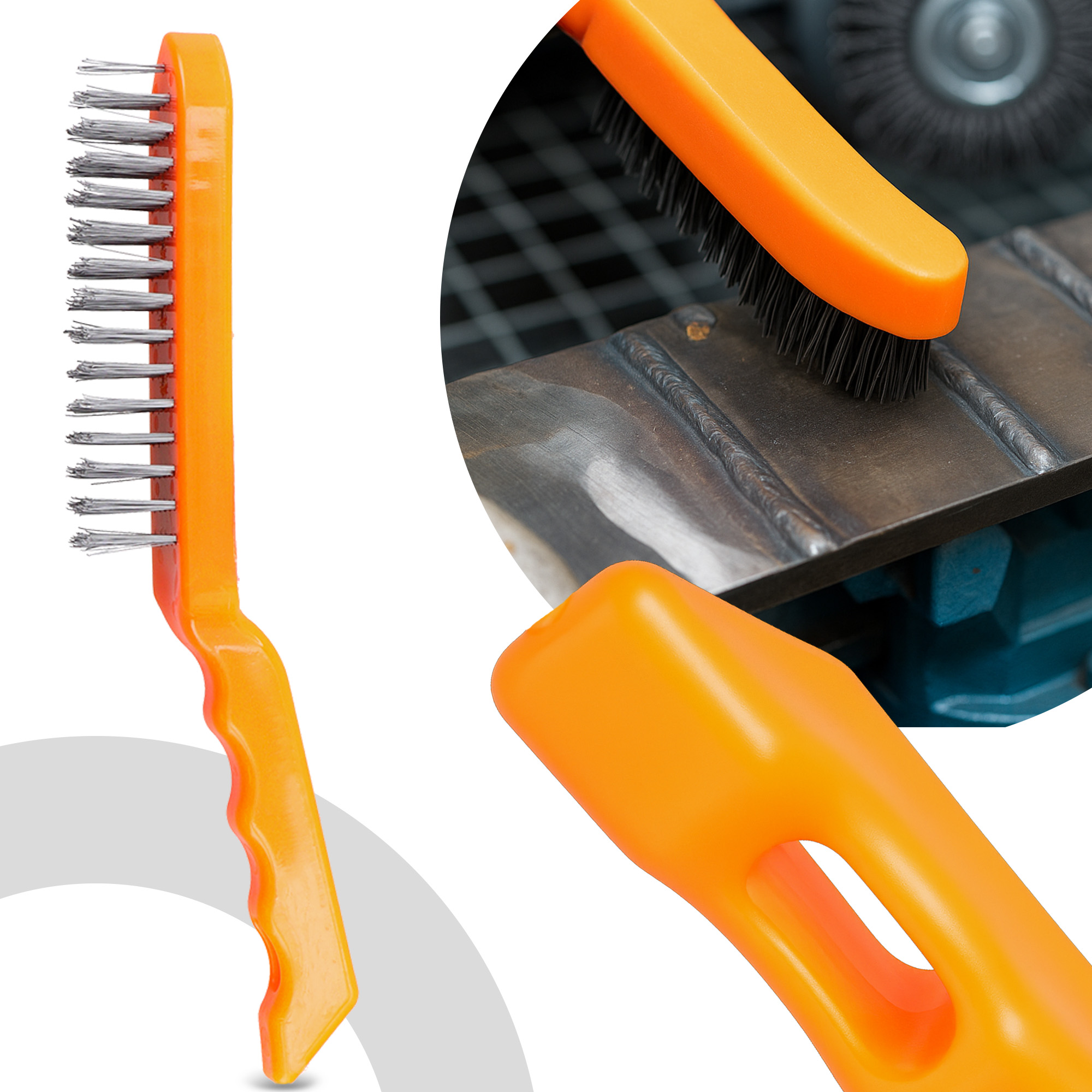 Це часто використовується в майстернях і на будівельних майданчиках. Міцна металева щетина витримує інтенсивне використання. Не потрібно збирання чи складання - просто візьміть і почніть працювати.