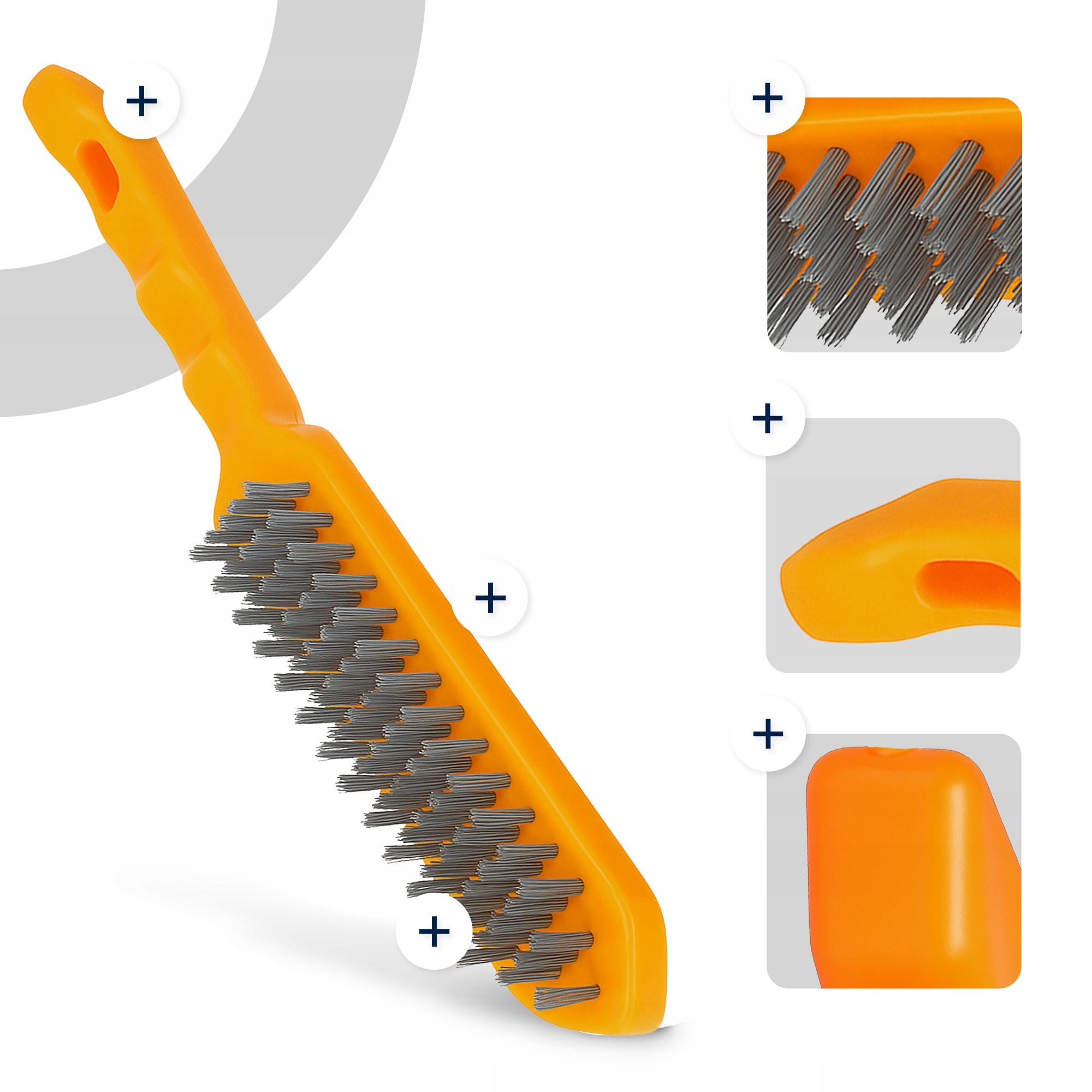 Металева щетина дозволяє ретельно видаляти забруднення з різних матеріалів. Ергономічна рукоятка полегшує керування інструментом, а його компактний розмір збільшує контроль над роботою.