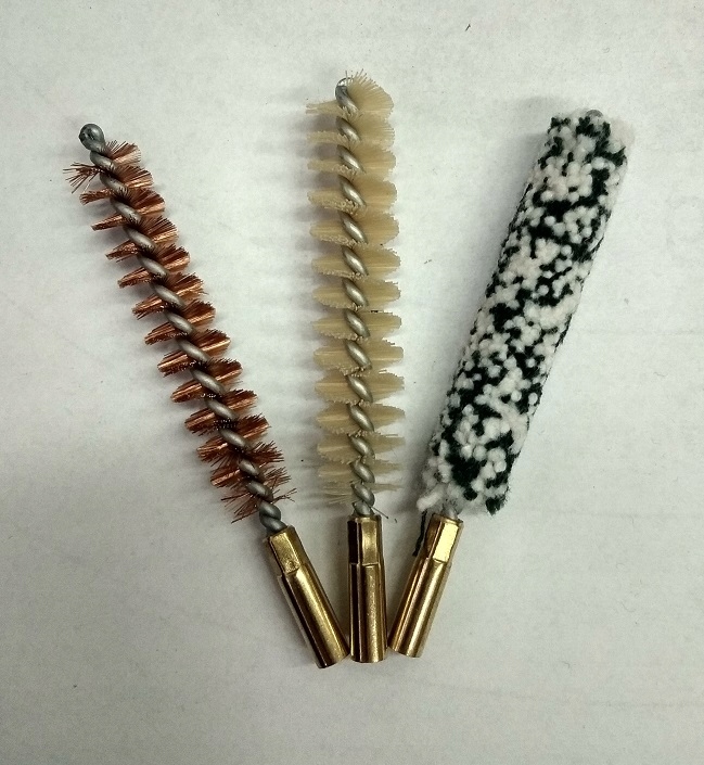 Набір із трьох щіток для чищення вогнепальної зброї.