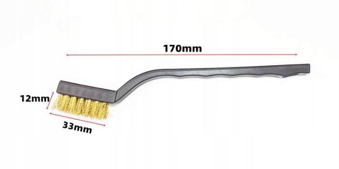 Дротяна латунна щітка довжиною 170 мм виготовлена з гофрованого латунного дроту. Щітка для видалення фарб, лаків, іржі, шлаку та інших легких забруднень з металевих поверхонь. Він не подряпає очищений матеріал.