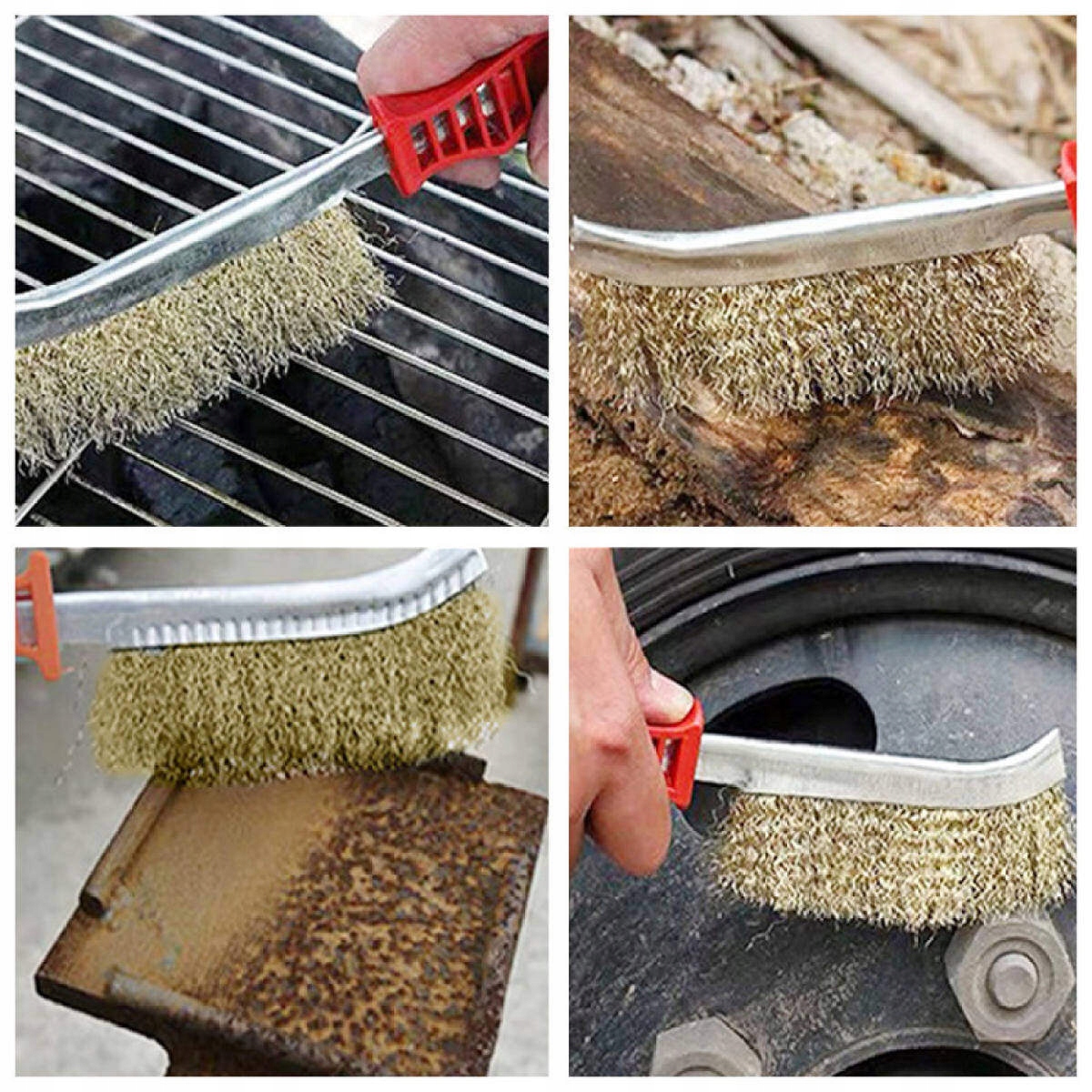 - Щітка виготовлена з гофрованого латунного дроту, закріпленого на металевій ручці.