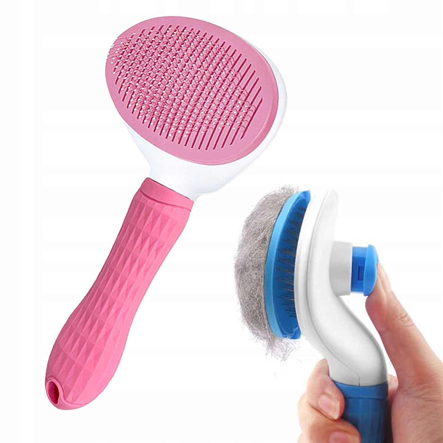 Самоочисна щітка для шерсті собак і котів оснащена кнопкою для швидкого очищення. Він легко позбавляє від клубків, не вибираючи їх щіткою.