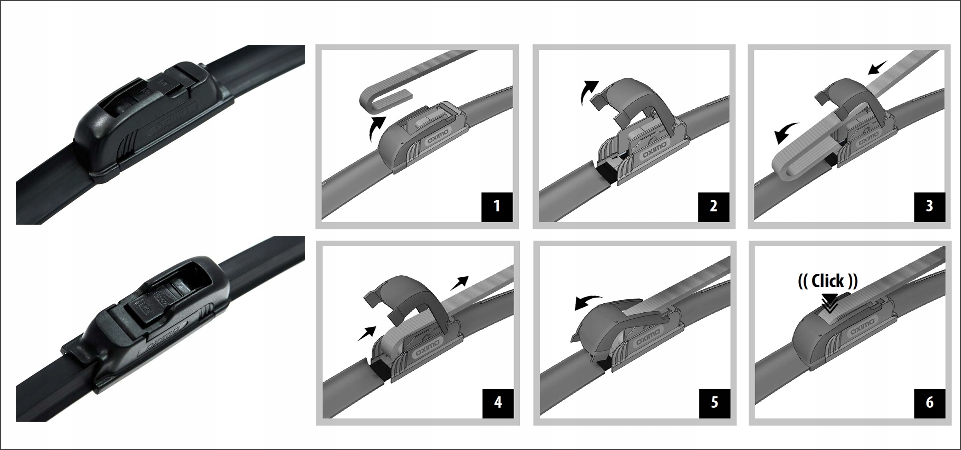 Безкаркасні двірники U-типу. Кріплення U-подібного типу 9 мм і U-подібного типу 8 мм в одному. Ці типи склоочисників монтуються на т.зв "Гак" у формі літери "U".