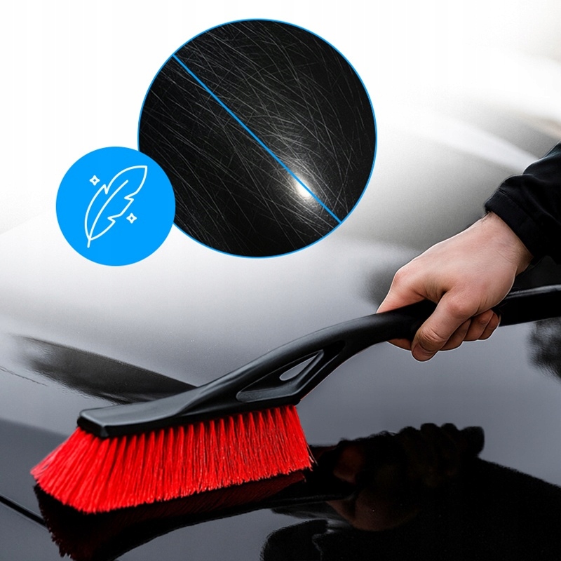 Щітка виготовлена з високоякісного пластику та залишається гнучкою та ефективною навіть за дуже низьких температур. Його міцна щетина дозволяє без зусиль видаляти сніг з тіла та елементів кузова, забезпечуючи швидке та зручне прибирання снігу.
