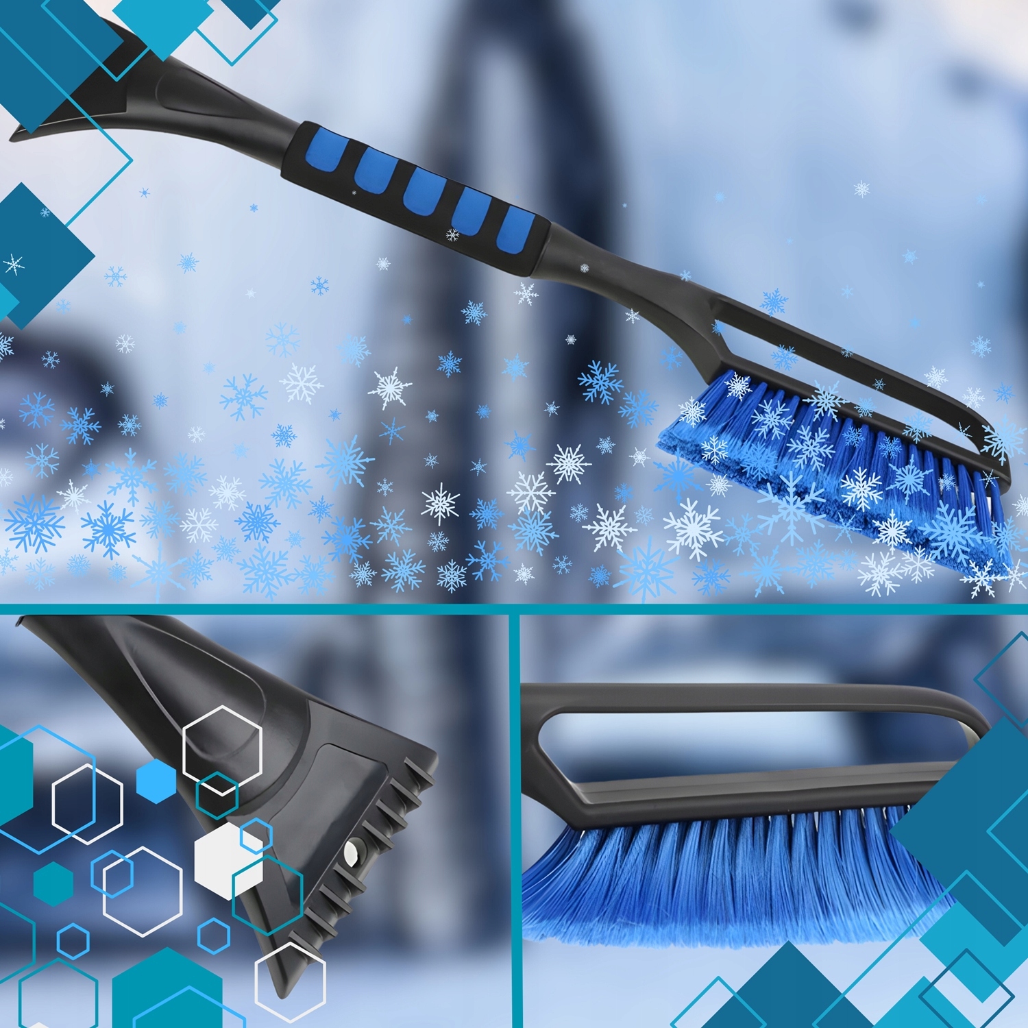 Поєднання щітки для снігу та скребка для льоду дає вам два інструменти в одному, що збільшує функціональність і економить місце.