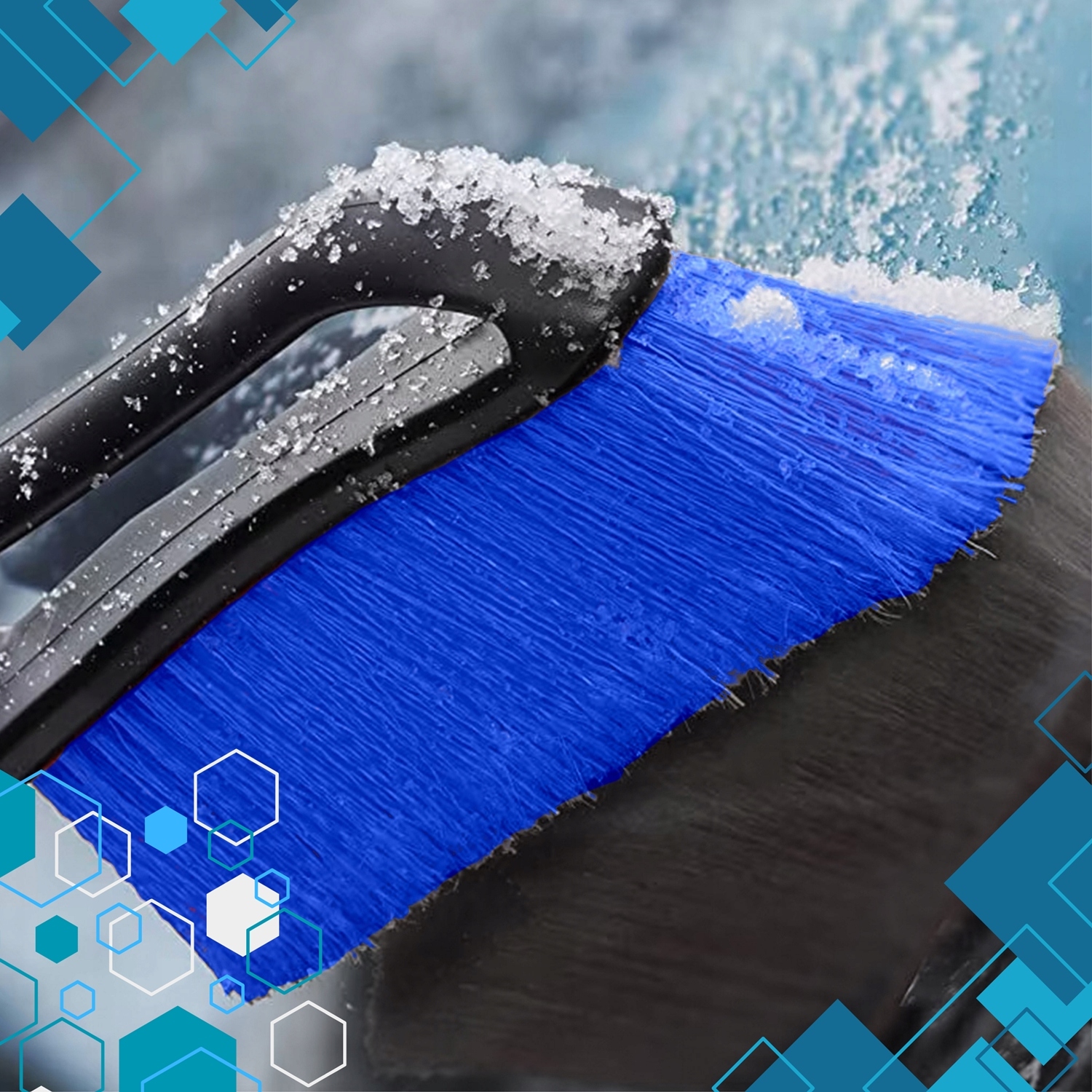 Щітка оснащена м’якою, але міцною щетиною, яка ефективно видаляє сніг, не дряпаючи фарбу.