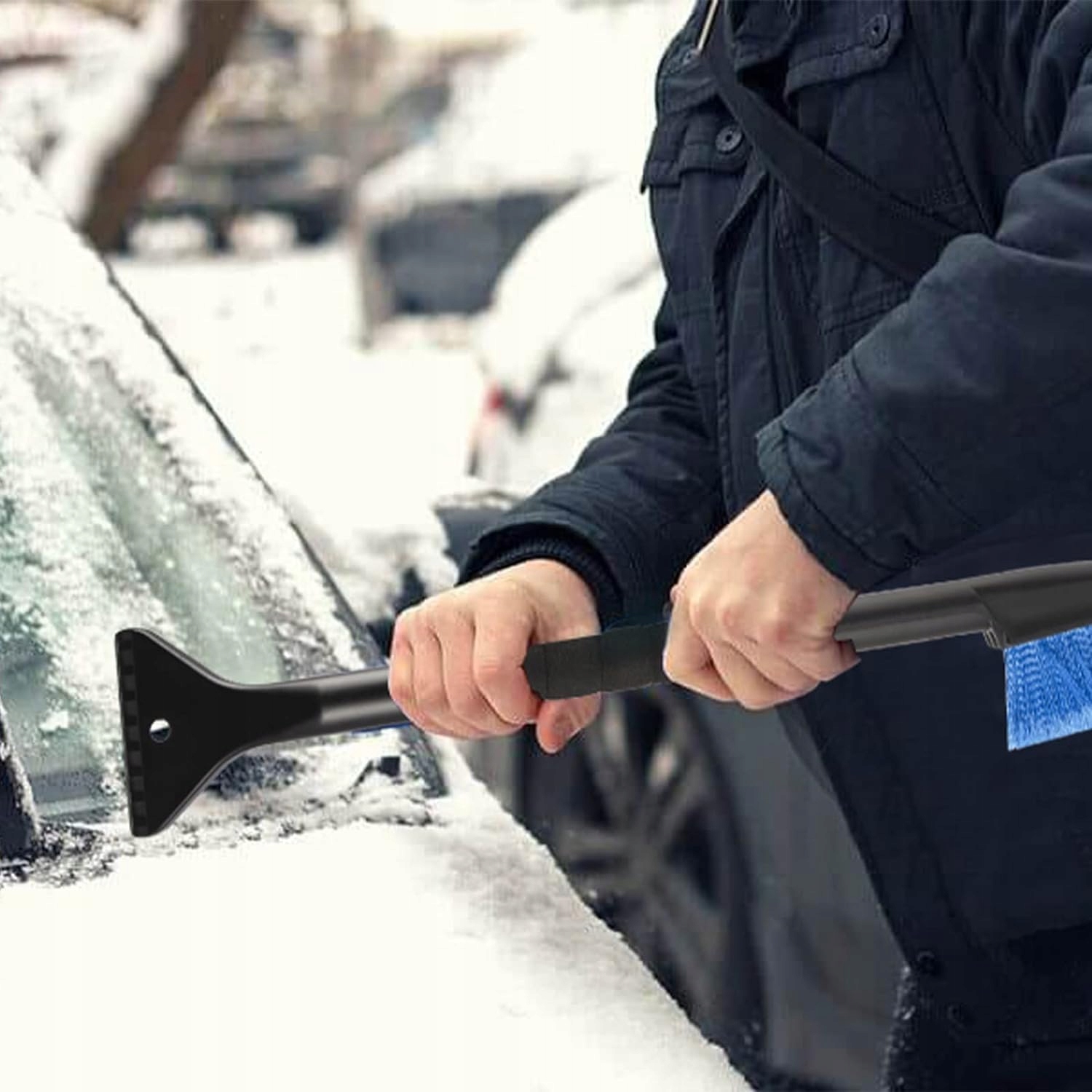 Снігова щітка дозволяє легко прибирати сніг із вашого автомобіля, а скребок на іншому кінці використовується для видалення льоду та бруду з шин із вітрового скла чи вікна. Окрім швидкого видалення снігу та льоду, щітка для прибирання снігу також може очищати засніжені будинки, скляні двері та вікна тощо. Скребок для льоду та щітка для прибирання снігу є знімними, що ефективно зменшує простір для зберігання.