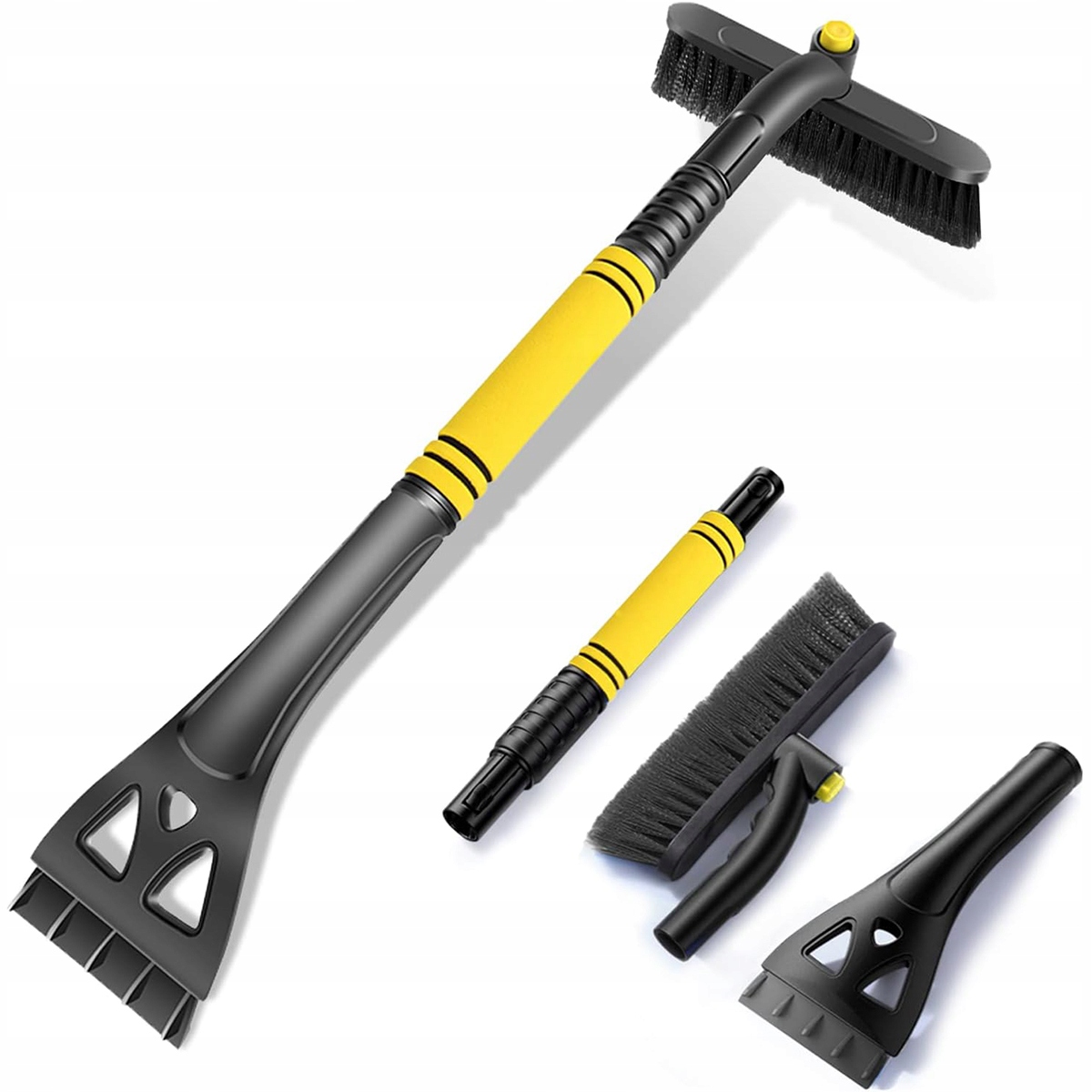 3 частини - щітка для снігу, скребок для льоду та ручка з алюмінієвого сплаву. Кнопкова конструкція поворотної щітки для снігу, що замикається горизонтально та вертикально, дозволяє розташувати щітку під оптимальним кутом для кожної роботи відповідно до різних потреб використання. Телескопічний автомобільний скребок знімний, легкий і портативний, ви можете легко розмістити його на задньому сидінні або багажнику. Примітка. Не залишайте снігову щітку надворі на морозі, зберігайте її в машині чи в приміщенні, інакше вона стане крихкою.