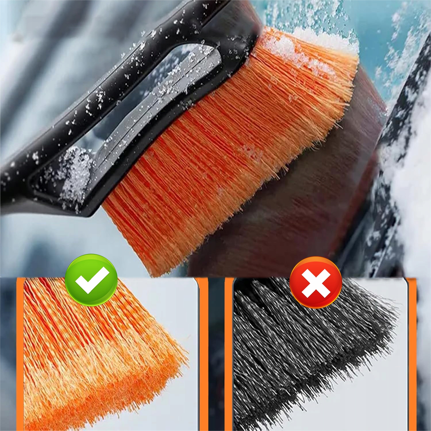 - Міцний скребок для льоду з мітлою може легко змітати сніг.