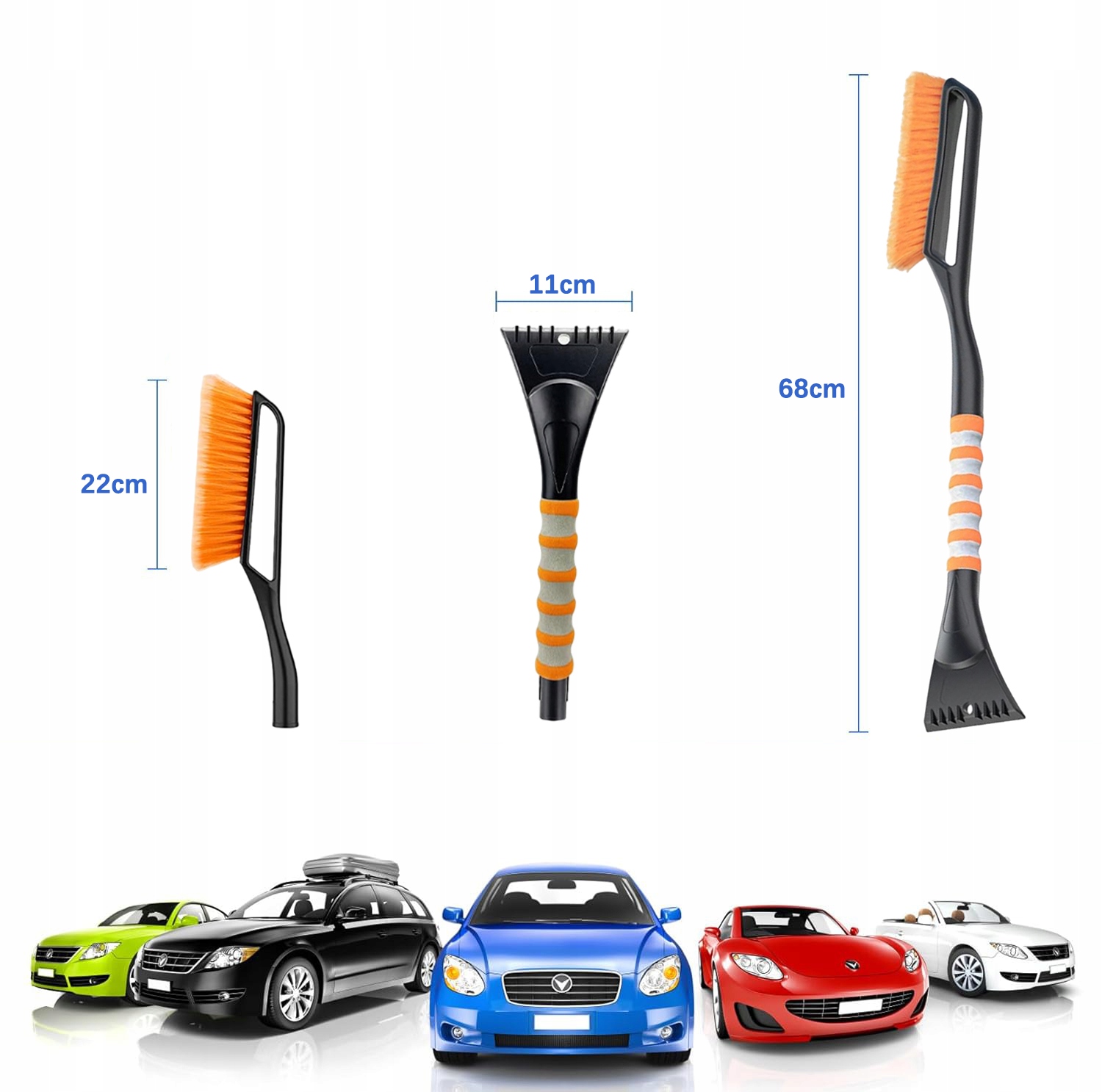 - Довжина 68 см забезпечує більший досяжність для автомобіля, головка щітки довжиною 22 см швидко ковзає по лобовому склу, а скребок для льоду діаметром 11 см проникає глибоко, не дряпаючи.