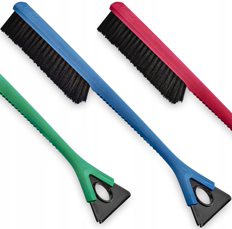 - Довга ручка та густа щітка щетини ідеально підходять для видалення льоду та снігу з вашого автомобіля.