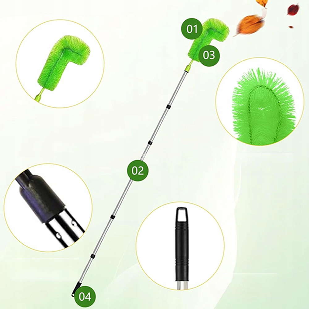 - Наша щітка для чищення жолобів є знімною, що дозволяє регулювати її довжину відповідно до ваших потреб, забезпечуючи гнучкість для різноманітних прибирань сценарії.