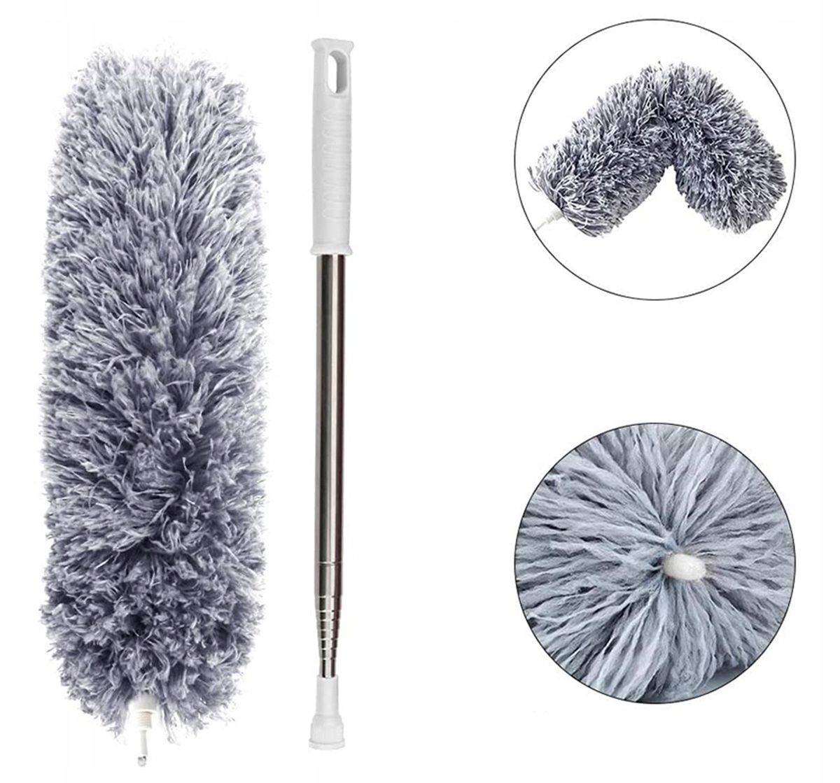 Телескопічний пиловник максимальною довжиною 280 см. Дозволяє видалити забруднення у важкодоступних місцях, наприклад, за меблями або під стелею. Щітка виготовлена з мікрофібри, яка чудово збирає пил. Є можливість демонтувати щітку і від'єднати її від складної ручки. Пухлина має додатковий гачок, який дозволяє її підвішувати.