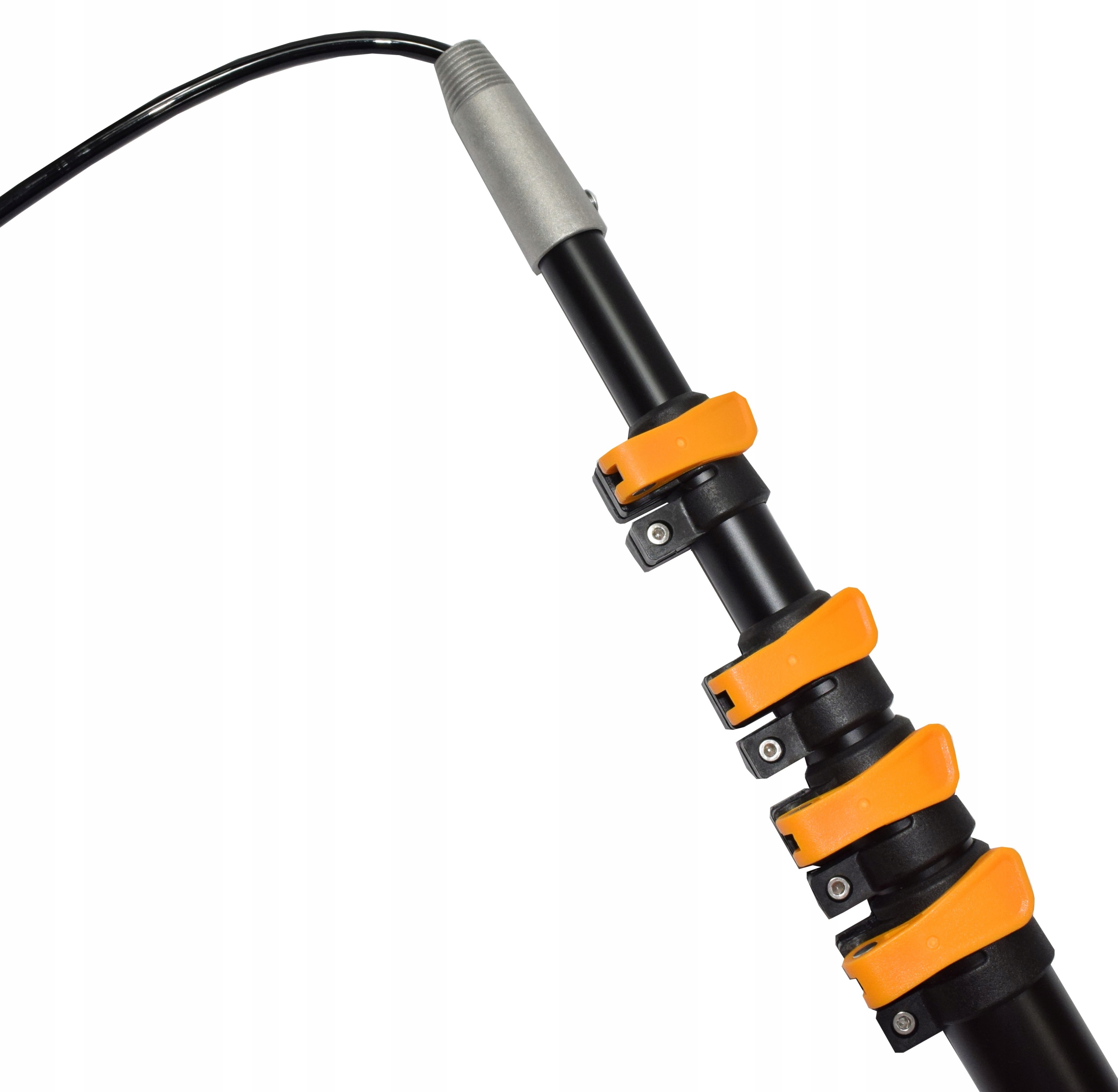 Шланг подачі води проходить всередині телескопічного кріплення, що є великою перевагою під час роботи зі щіткою. Навісне обладнання складається з чотирьох секцій, які послідовно розтягуються на довжину 6 м, найменша довжина 1,65 м. Розтягнути насадку дуже швидко і легко, просто зніміть пластиковий хомут і вудилище трохи витягнеться до необхідної довжини. Довжину можна зафіксувати важелем у будь-якому положенні.