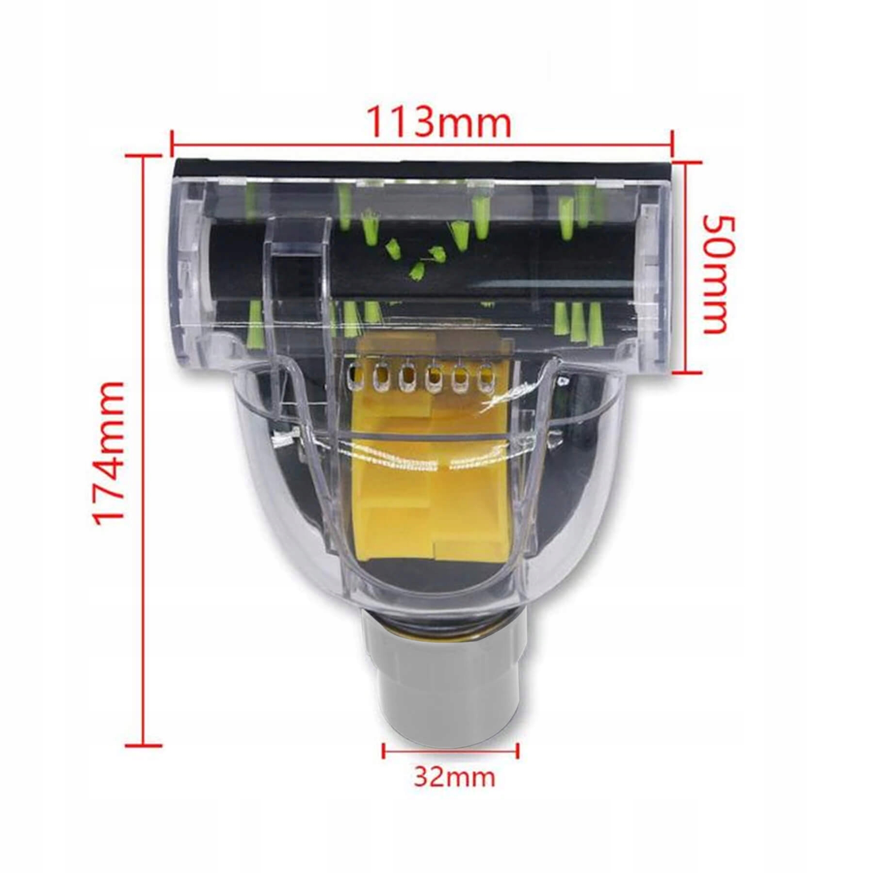 Універсальна міні-турбощітка для пилососа з адаптером. Оснащена обертовим валом, що приводиться в дію турбіною. Це позитивно впливає на потужність всмоктування пилососа. Має силіконові зубці. Призначений в основному для пилососу килимів з довгим ворсом. Ідеально підходить для вашого дому, він полегшить щоденне прибирання килимів і підлоги.