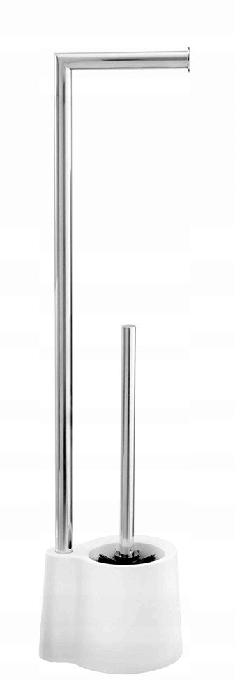 Простий і елегантний набір дасть ванній смак смаку. Підходить для ванних кімнат у будинках, офісах та різних приміщеннях. Паперова підставка висотою близько 66 см. Він виготовлений з нержавіючої сталі, відшліфований до високого блиску. Він вбудований на основі білого пластику. Він також має місце для туалетної щітки. Він має чорний колір, а замінний наконечник робить його більш гігієнічним. Білий колір стійки та щітки туалетного паперу пов'язаний з чистотою. Набір буде придатним для ванних кімнат у різному стилі. Його проста та елегантна форма дозволяє йому відповідати різним типам інтер'єру. За допомогою такого набору ми уникнемо буріння в стіні, і, якщо необхідно, ми можемо легко змінити інтер’єр нашої ванної кімнати.
