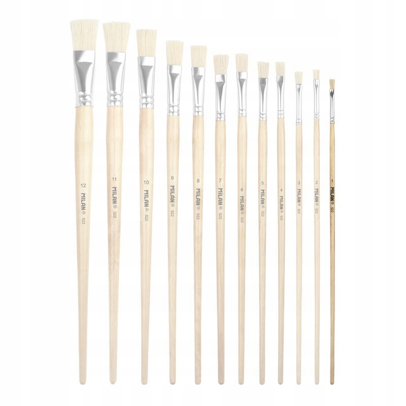 Плоска кисть серії 522 №. 10 з щетини з довгою дерев'яною ручкою.