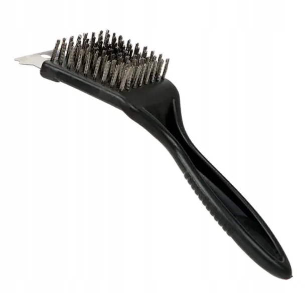 Оснащений скребком, він ефективно видаляє бруд і жир із решітки, забезпечуючи гігієну під час смаження. Ергономічна ручка полегшує використання, а компактний розмір дозволяє легко зберігати щітку та брати її з собою на будь-який пікнік з барбекю. Його універсальне використання робить його придатним для різних типів грилів, ідеально задовольняючи потреби любителів грилю.