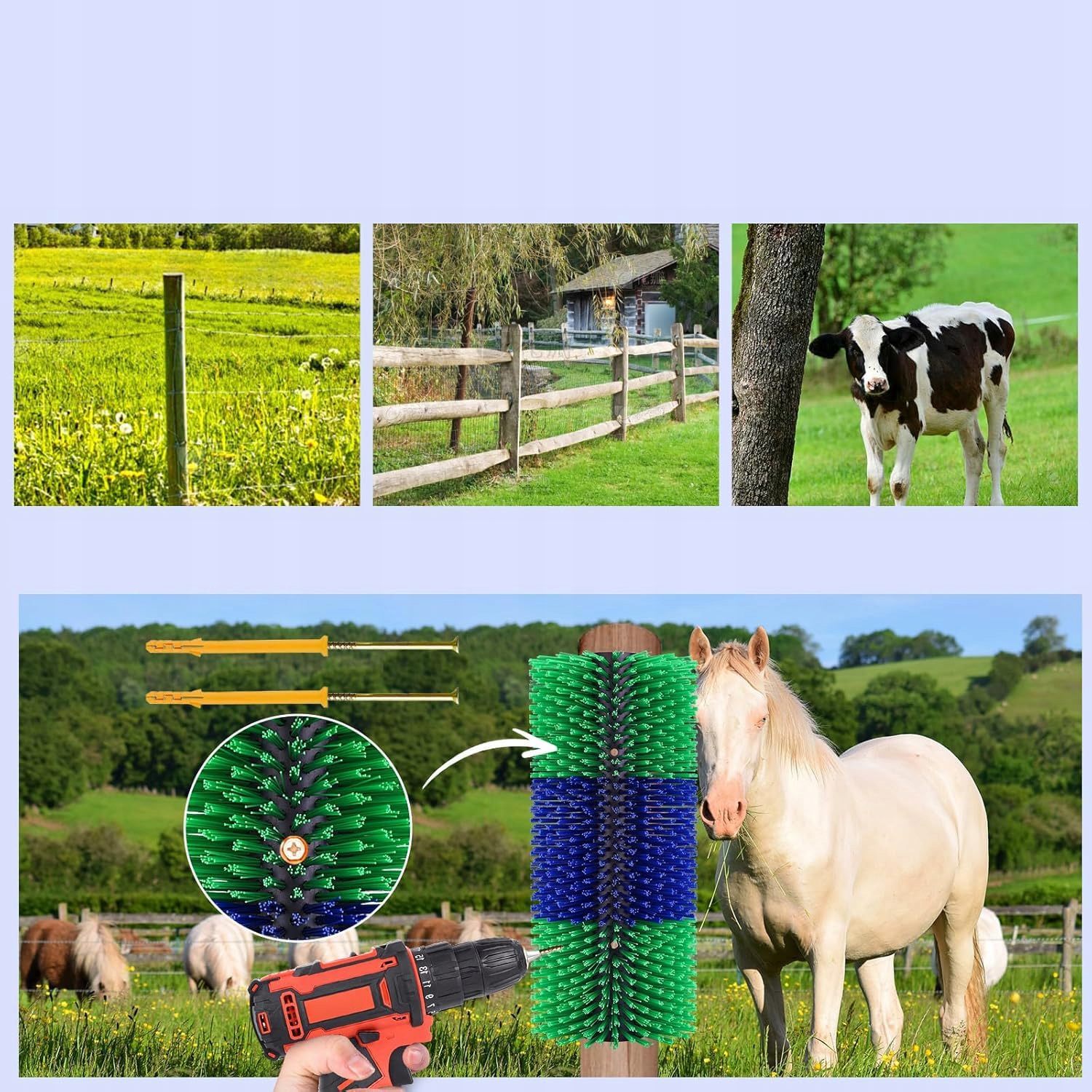 🤠🤠【Просте встановлення】 Вам не потрібно турбуватися про інструменти для встановлення, ми надаємо вам послугу, яка дозволяє легко встановити його в загон, на залізний стовп. або на вулиці, і він також дуже міцний (навіть на стіні). Наша щітка для скребка спини оснащена цими щітками для скребка великої рогатої худоби, які можна легко встановити в стайні, на відкритому повітрі, на стовпах, стовпах або стінах. Враховуючи легкість і безпеку, ви можете легко встановити цю щітку для очищення худоби.