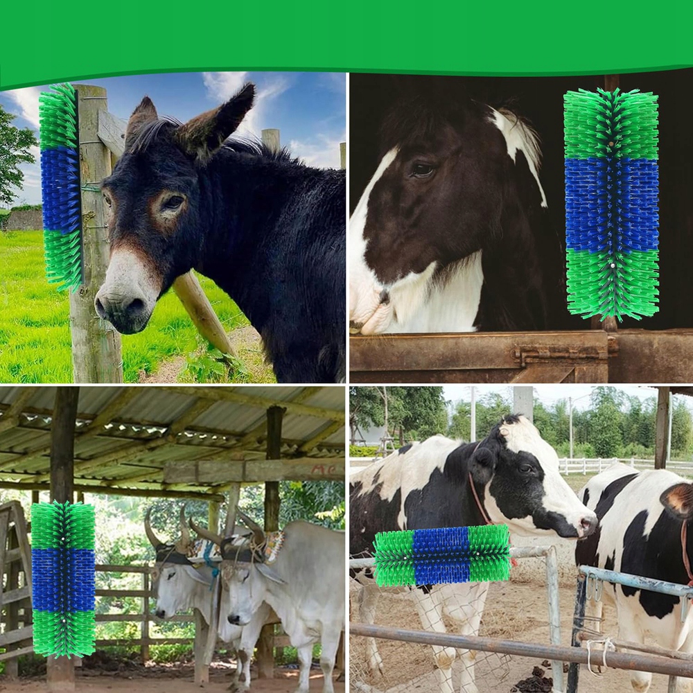 🤠🤠【Багатофункціональність】 Наші щітки для чищення худоби задовольнять потреби вашої худоби. Це корисне доповнення до догляду за вашими улюбленцями. Яскравий синьо-зелений колір покращує видимість, а розмір підходить для корів, коней, овець, свиней, оленів тощо. Наші щітки для чищення корів розроблені, щоб полегшити біль, сприяти чистоті, контролювати лупу та забезпечити вашій худобі приємний досвід догляду.
