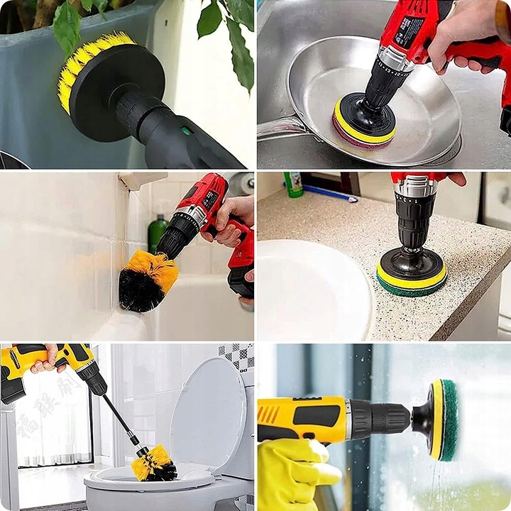 Щітки для дрилі мають середню жорсткість, тому підходять, серед іншого, для чистки плитки та розчину, умивальників, душів, ванн та туалетів.