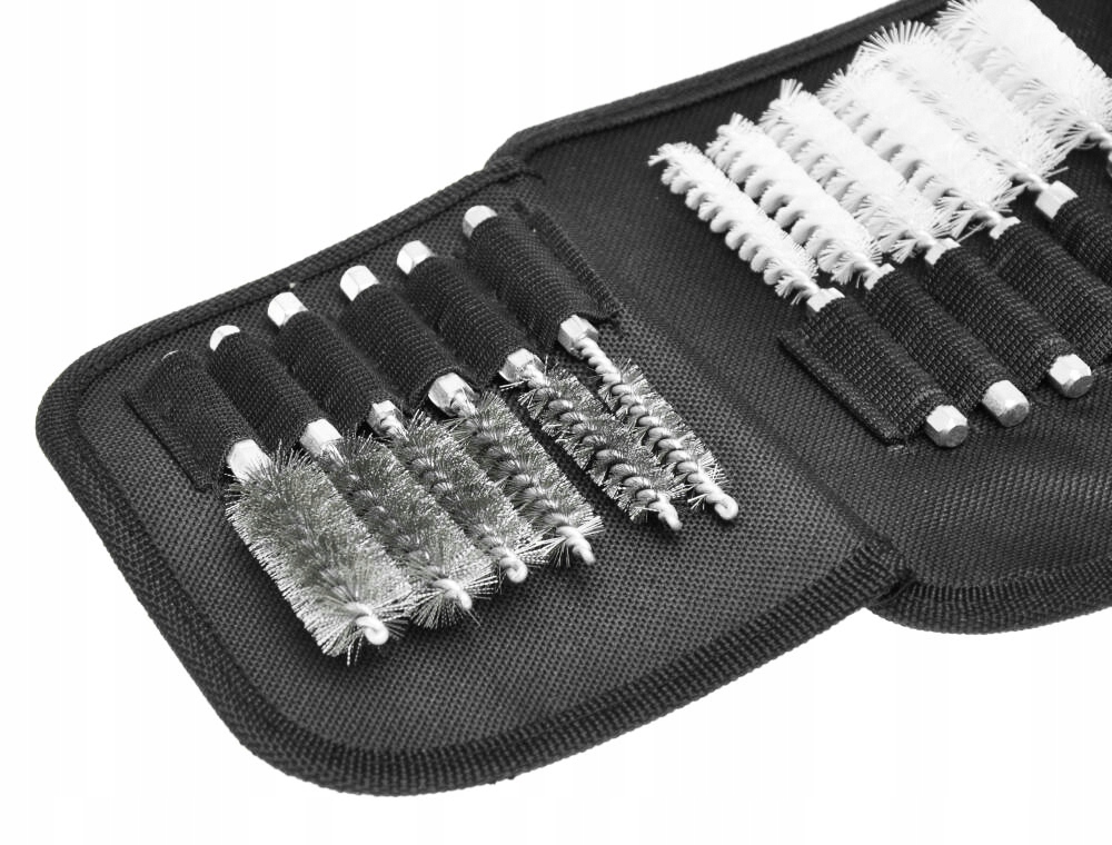 Професійний набір щіток для форсунок, свічок запалювання та розжарювання. У наборі 20 елементів, серед яких пензлики різних розмірів і матеріалів. У комплект входить подовжувач і ручка для викрутки. Все упаковано в зручний і практичний кейс.