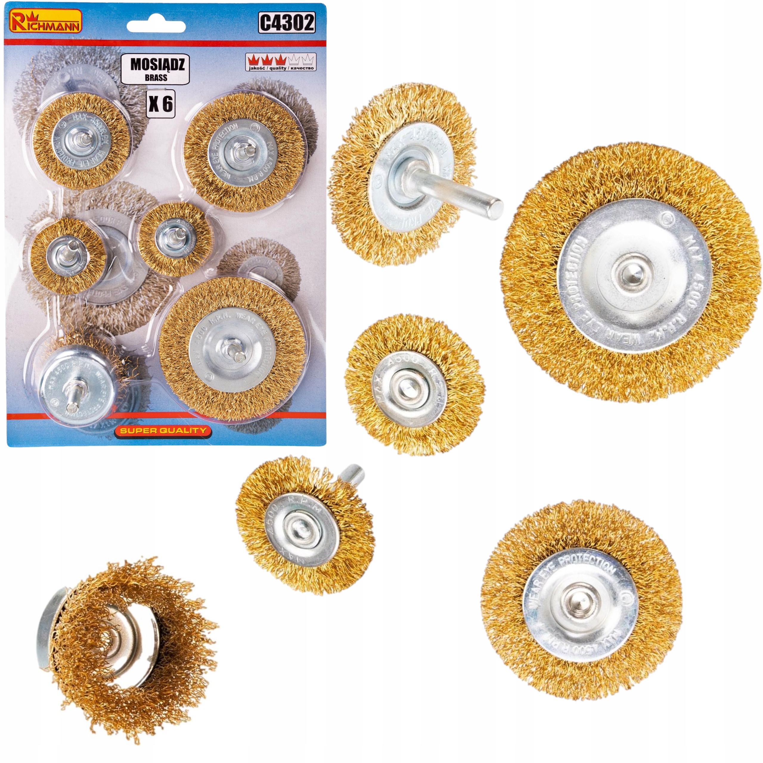 ☑️ НАБІР 6 ШТ. ЛАТУННІ ДРОТЯНІ ЩІТКИ ДЛЯ ДРИЛЯ