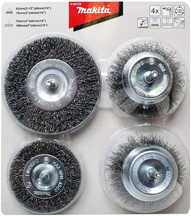 Набір із чотирьох частин із двома чашковими щітками та двома круглими щітками зі сталі з круглою ручкою 6 мм