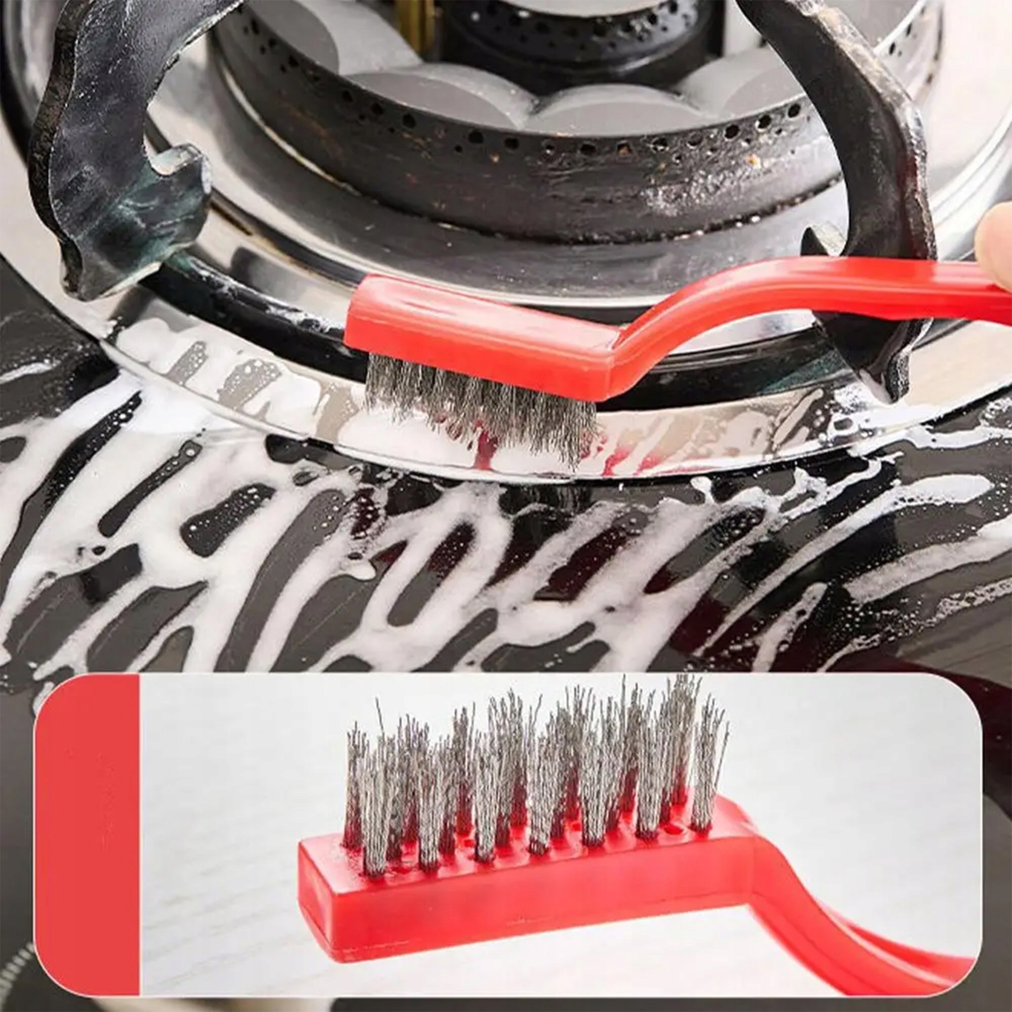 Набір із трьох щіток зі сталі, нейлону та латунного дроту. Контурна ручка забезпечує більшу ефективність очищення порівняно з простою версією. Щітки ідеально підходять для видалення забруднень з різних поверхонь.