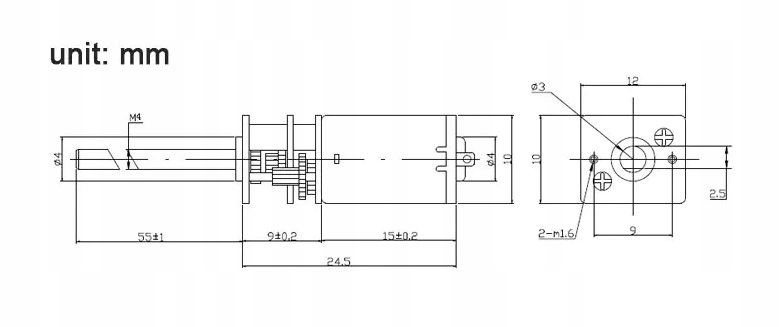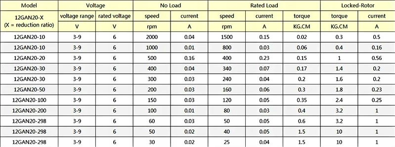 Міні-щітковий двигун GA12-N20 з валом M4 / 55 мм, 6 В, 60 об/хв