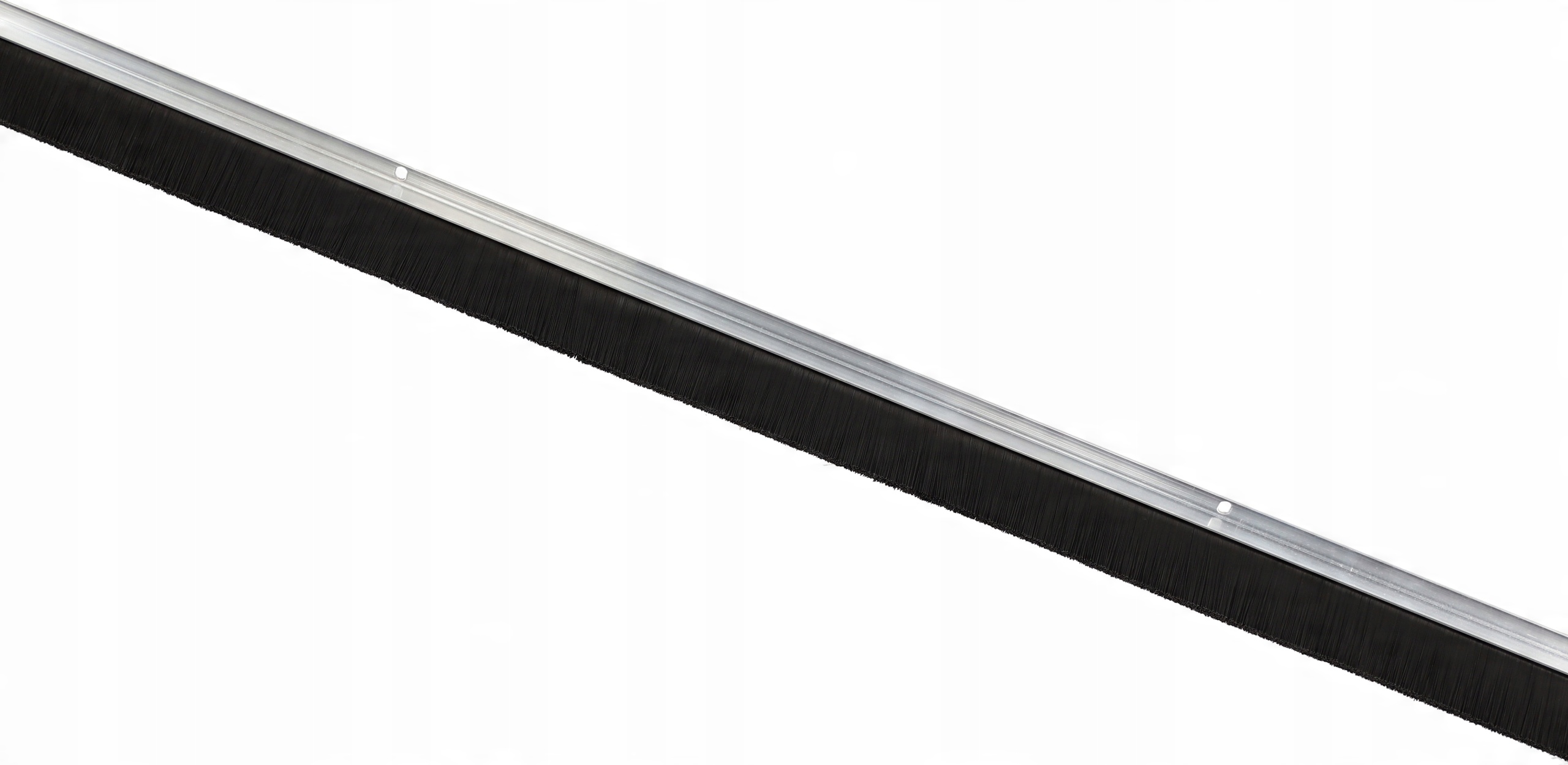 Дверна ущільнювальна стрічка зі щіткою, яку можна легко прикріпити за допомогою гвинтів. Ущільнювальна стрічка, прикріплена до дверей, захищає внутрішню частину приміщення від пилу, піску та інших забруднень ззовні під дверима. Легка і міцна планка виготовлена з алюмінію. Щітка оснащена щетиною 24 мм.