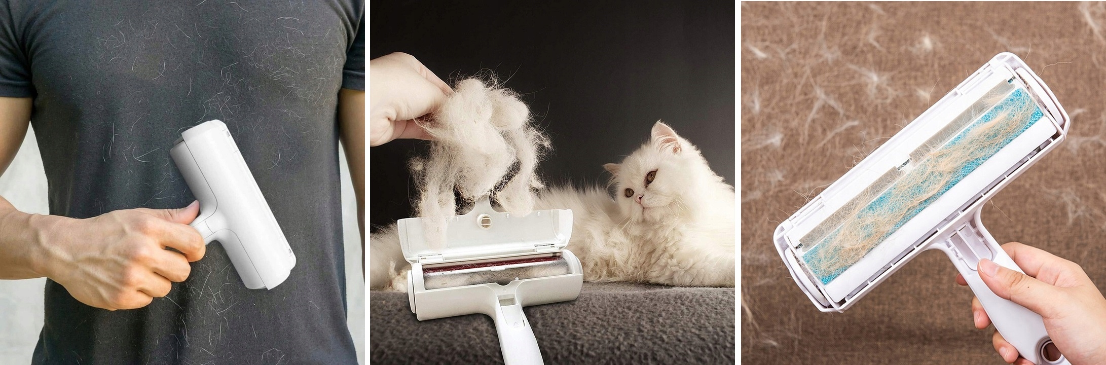 Багаторазовий валик для остаточного видалення шерсті домашніх тварин. Просто зробіть кілька коротких рухів вперед і назад валиком, щоб захопити шерсть домашніх тварин і пух у роликовий контейнер.
